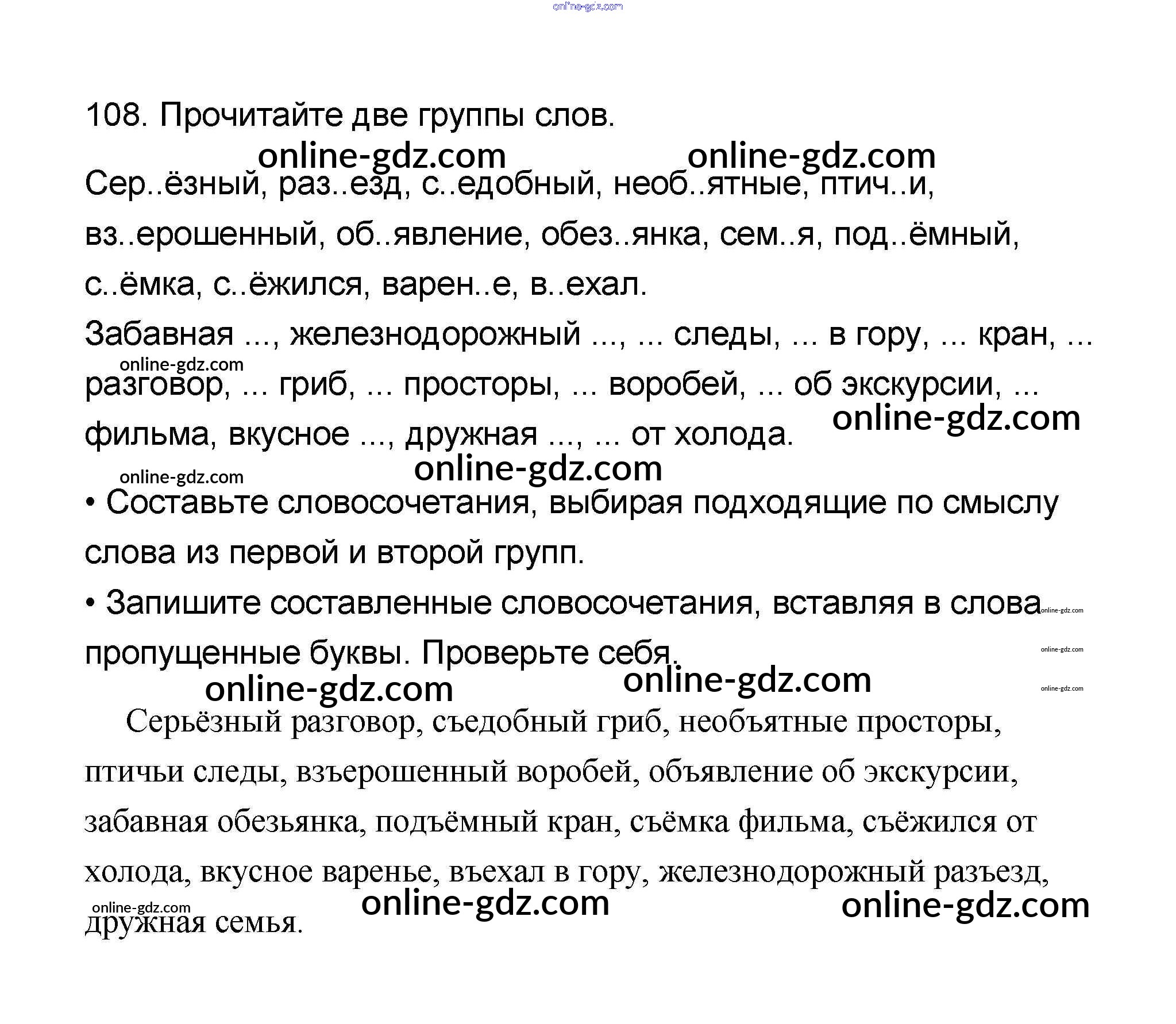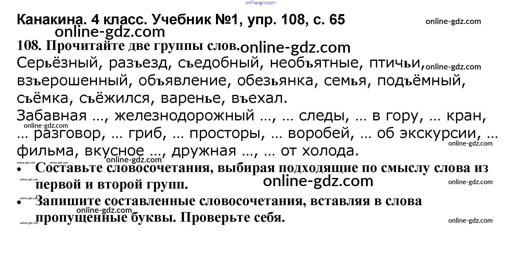 Готовые домашние задания по Русскому языку за 4 класс Учебник Канакина, Горецкий Школа России 2015 - Часть 1 108