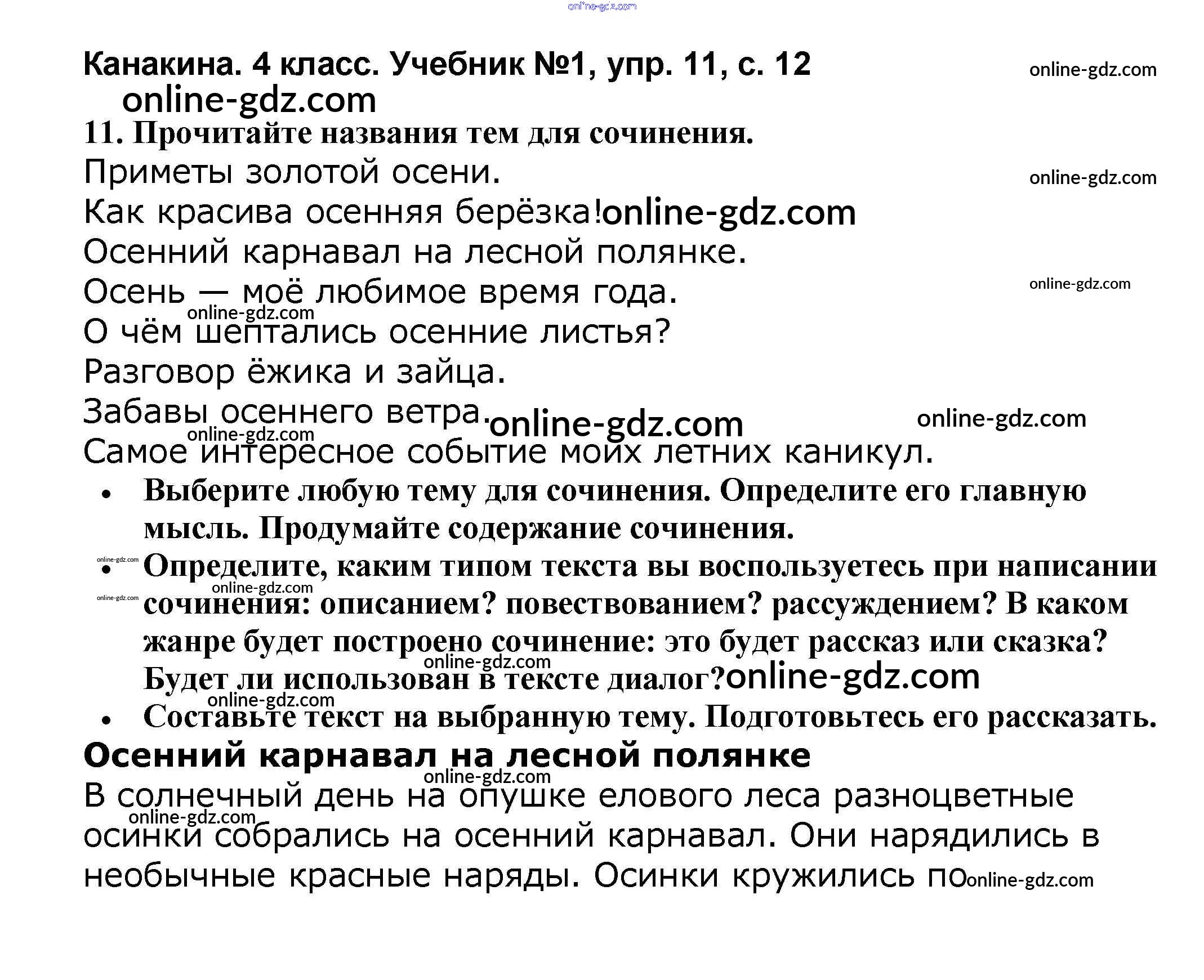 Готовые домашние задания по Русскому языку за 4 класс Учебник Канакина, Горецкий Школа России 2015 - Часть 1 11