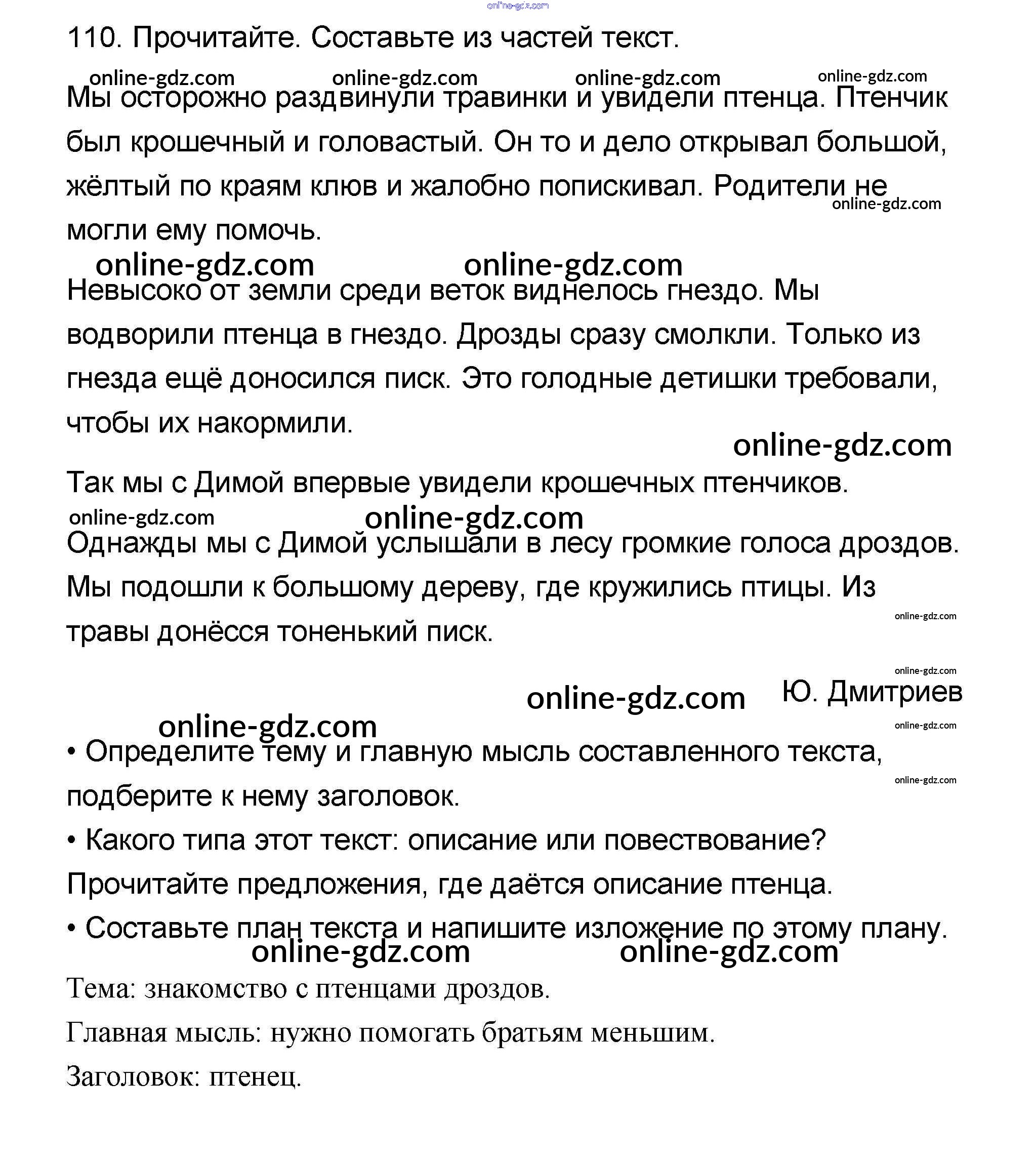 Готовые домашние задания по Русскому языку за 4 класс Учебник Канакина, Горецкий Школа России 2015 - Часть 1 110