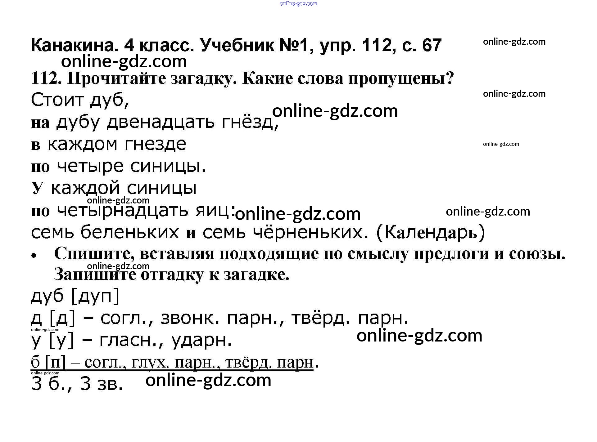 Готовые домашние задания по Русскому языку за 4 класс Учебник Канакина, Горецкий Школа России 2015 - Часть 1 112