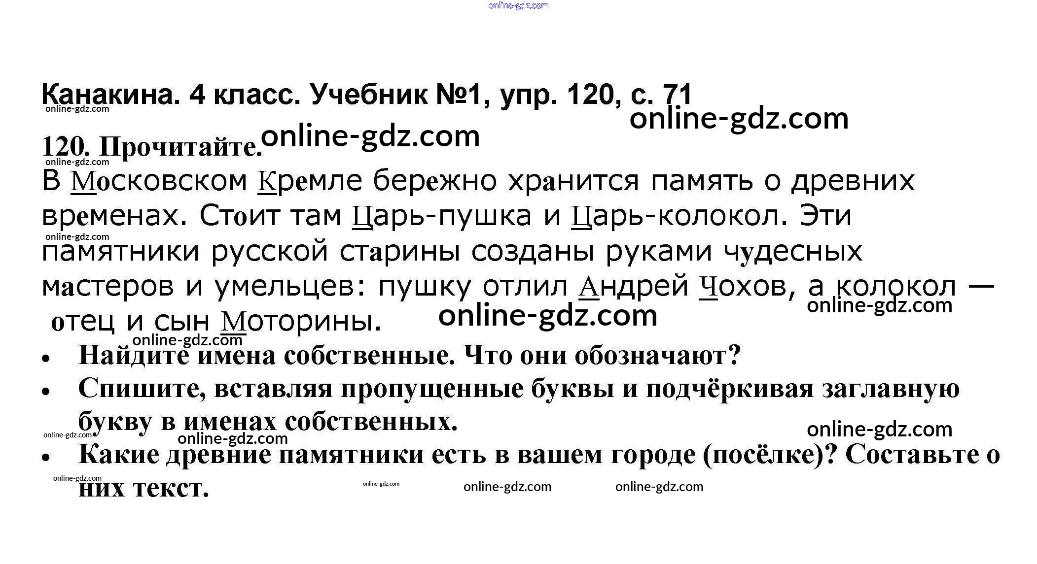 Готовые домашние задания по Русскому языку за 4 класс Учебник Канакина, Горецкий Школа России 2015 - Часть 1 120