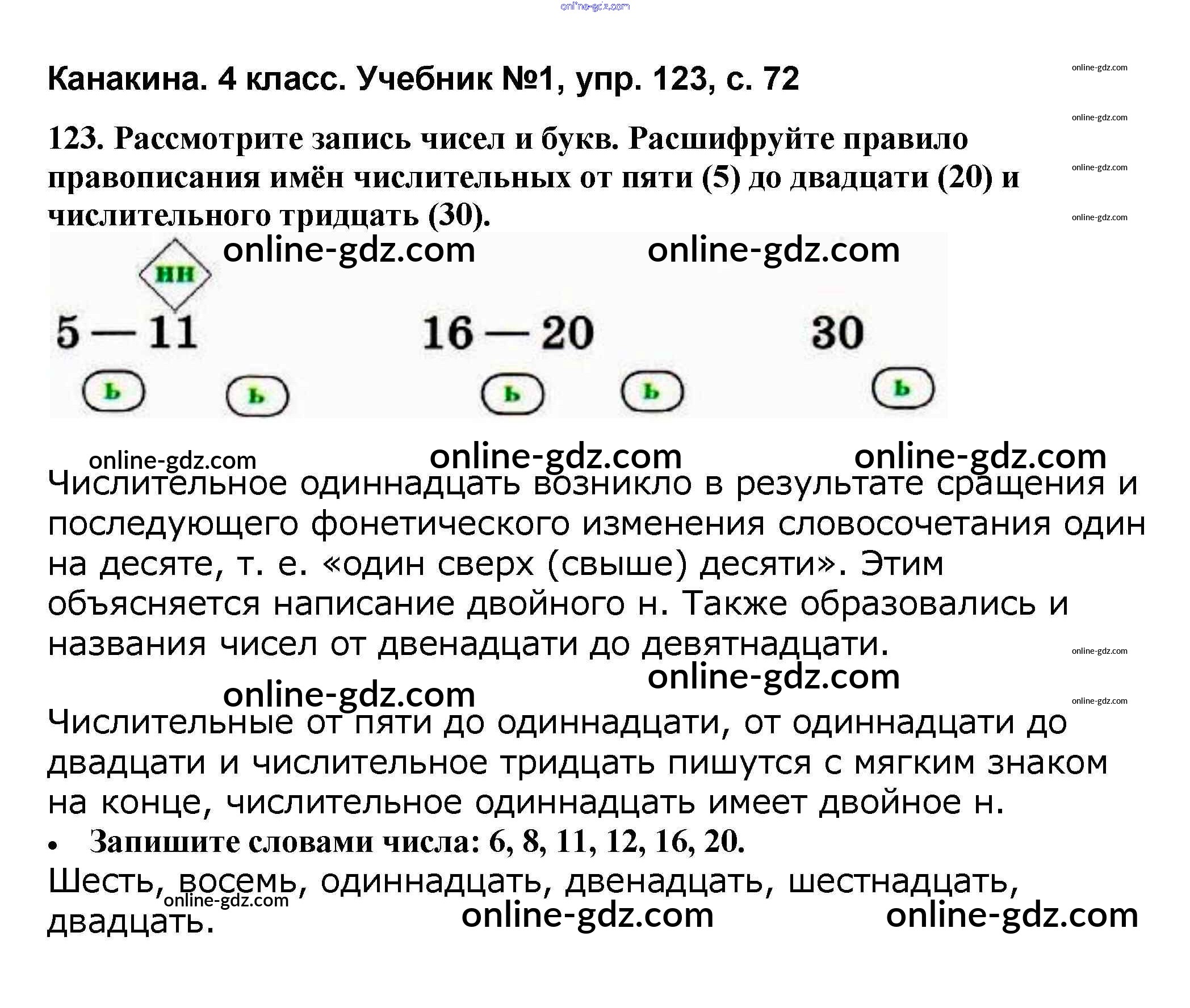 Готовые домашние задания по Русскому языку за 4 класс Учебник Канакина, Горецкий Школа России 2015 - Часть 1 123