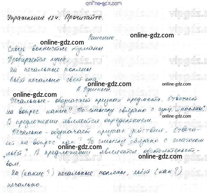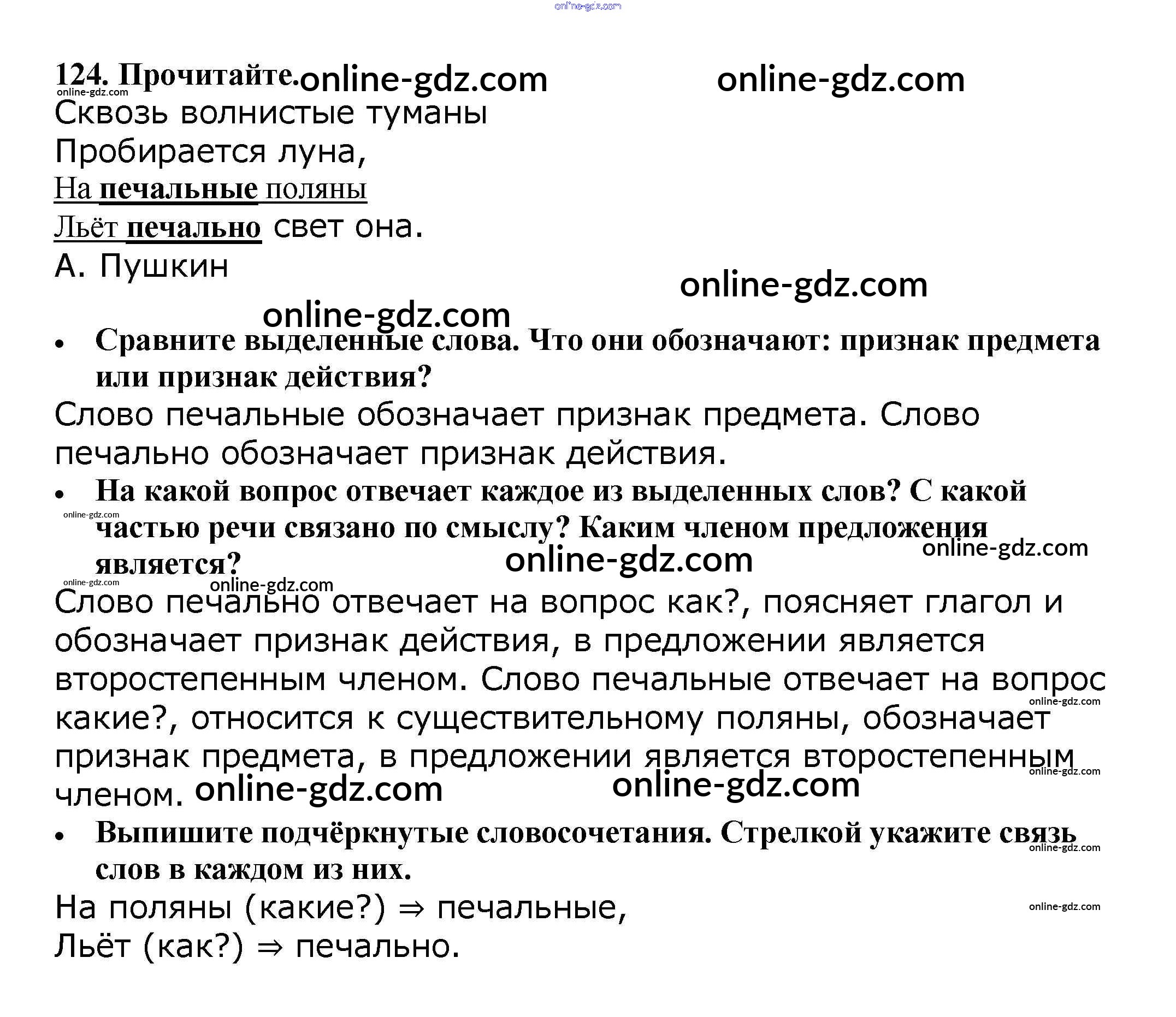 Готовые домашние задания по Русскому языку за 4 класс Учебник Канакина, Горецкий Школа России 2015 - Часть 1 124
