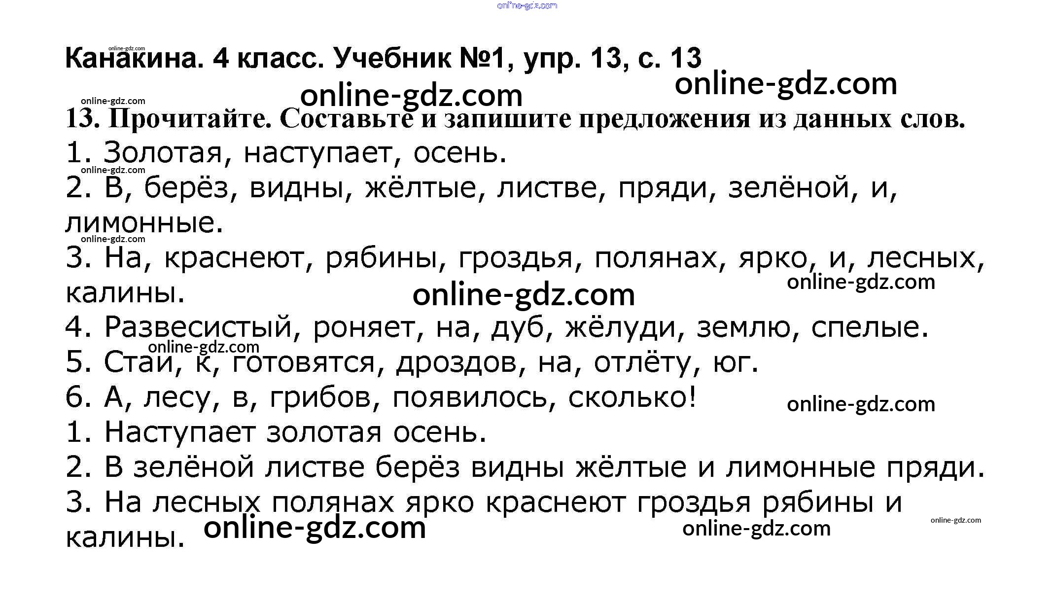 Готовые домашние задания по Русскому языку за 4 класс Учебник Канакина, Горецкий Школа России 2015 - Часть 1 13