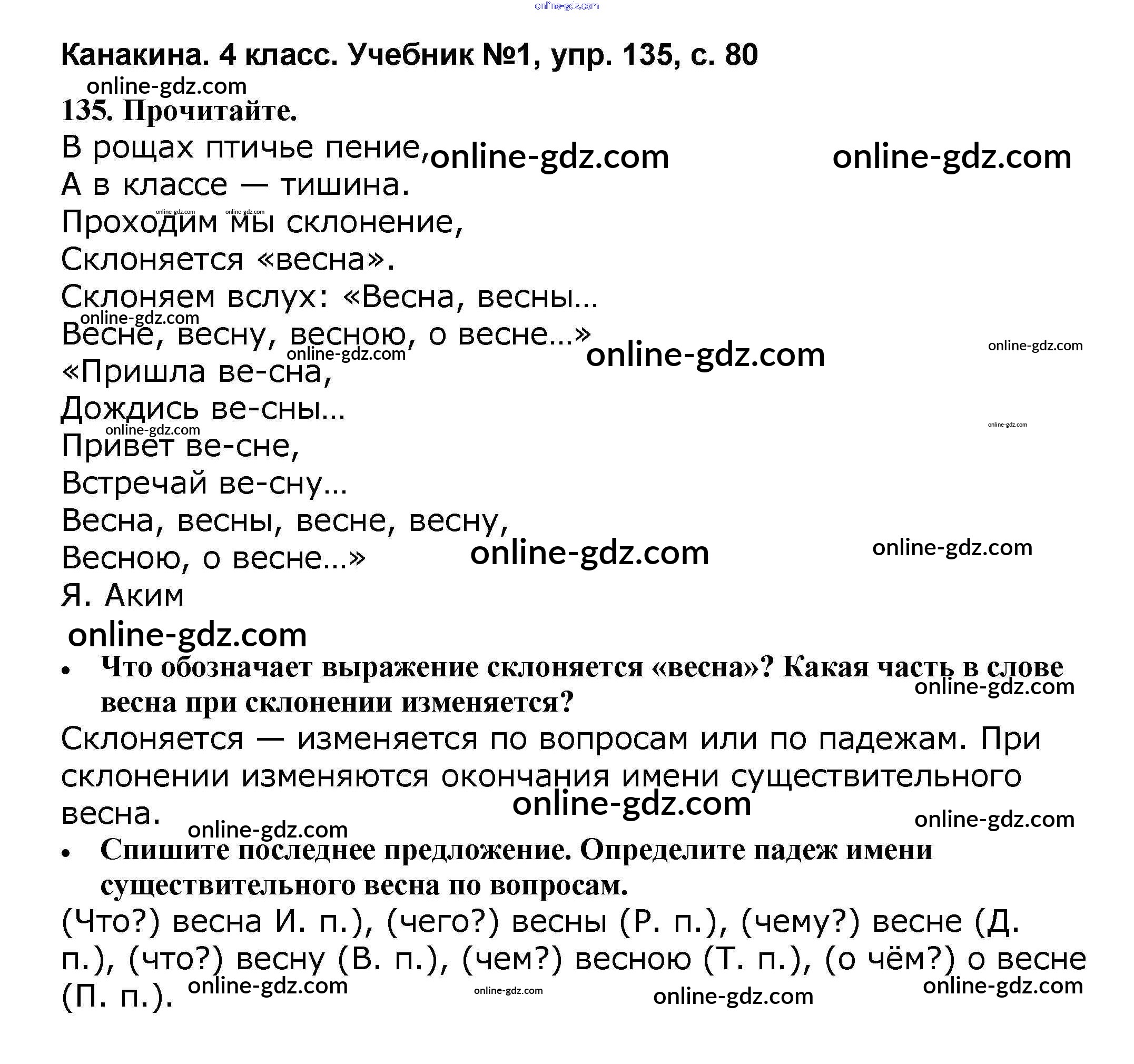 Готовые домашние задания по Русскому языку за 4 класс Учебник Канакина, Горецкий Школа России 2015 - Часть 1 135