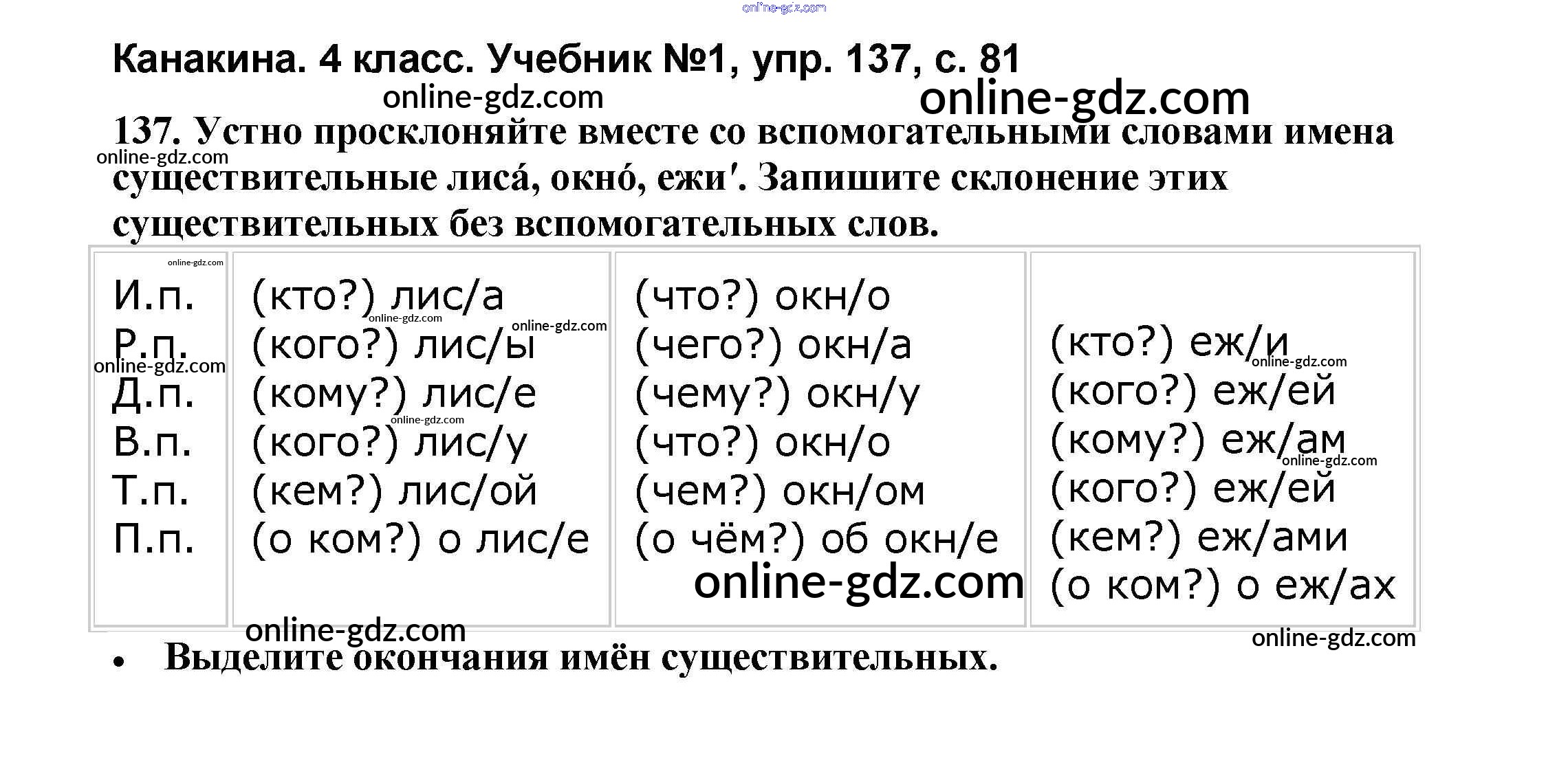 Готовые домашние задания по Русскому языку за 4 класс Учебник Канакина, Горецкий Школа России 2015 - Часть 1 137