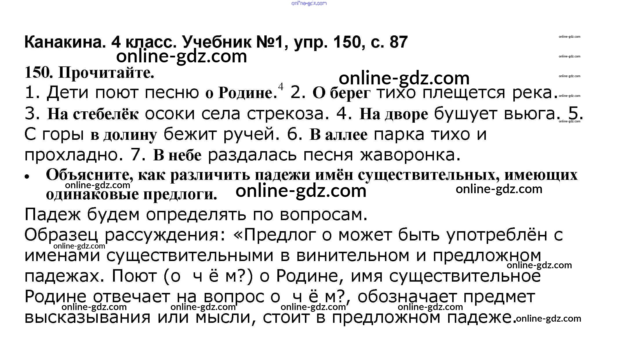 Готовые домашние задания по Русскому языку за 4 класс Учебник Канакина, Горецкий Школа России 2015 - Часть 1 150