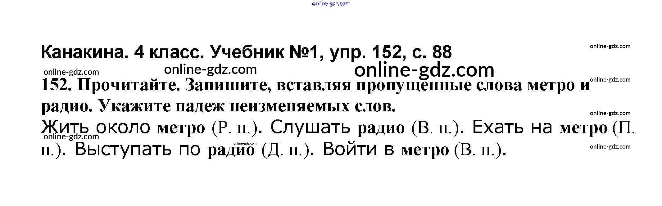 Готовые домашние задания по Русскому языку за 4 класс Учебник Канакина, Горецкий Школа России 2015 - Часть 1 152