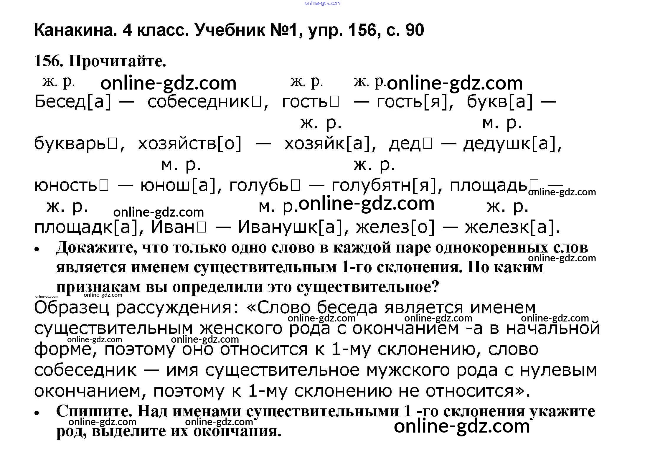 Готовые домашние задания по Русскому языку за 4 класс Учебник Канакина, Горецкий Школа России 2015 - Часть 1 156