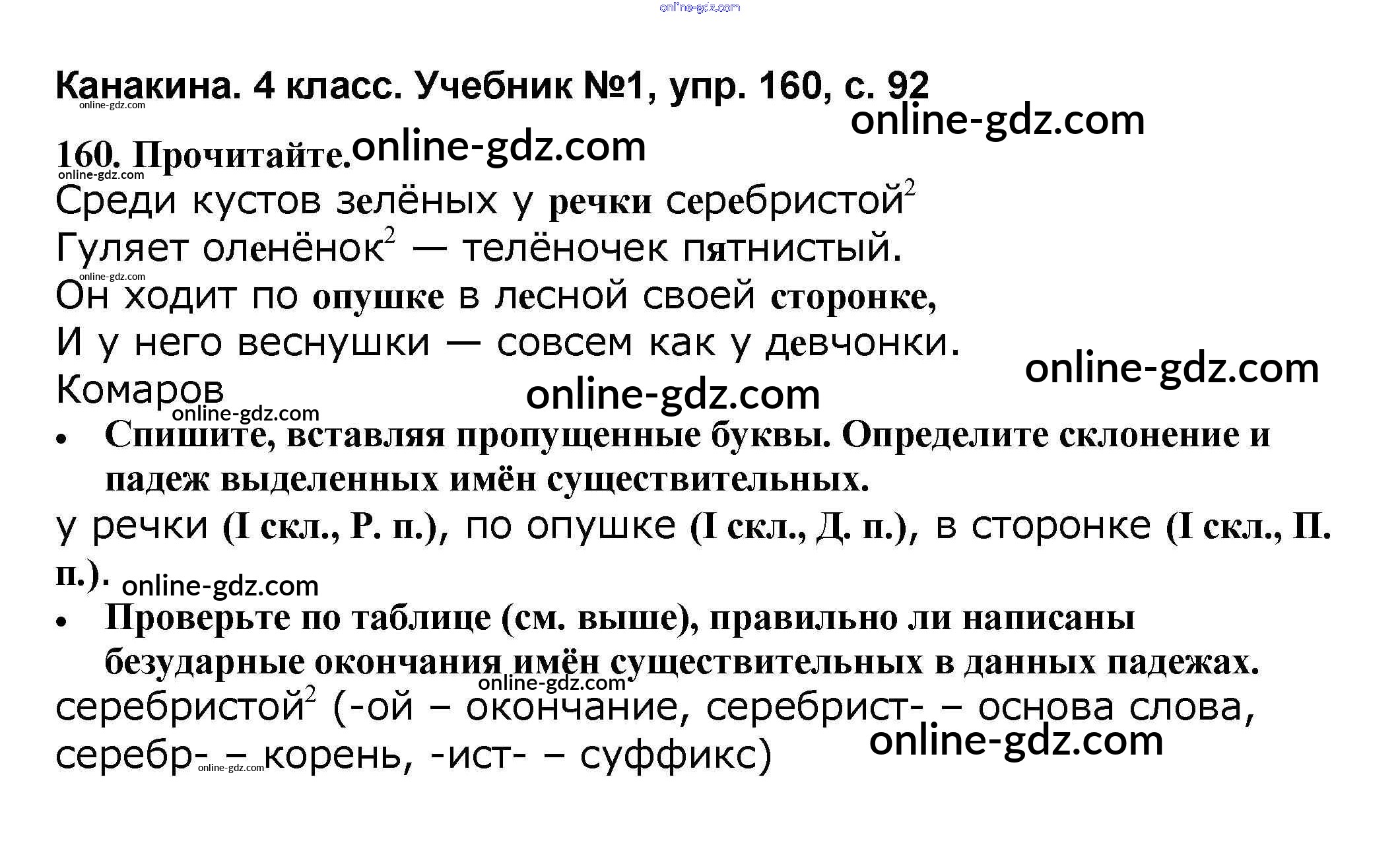 Готовые домашние задания по Русскому языку за 4 класс Учебник Канакина, Горецкий Школа России 2015 - Часть 1 160
