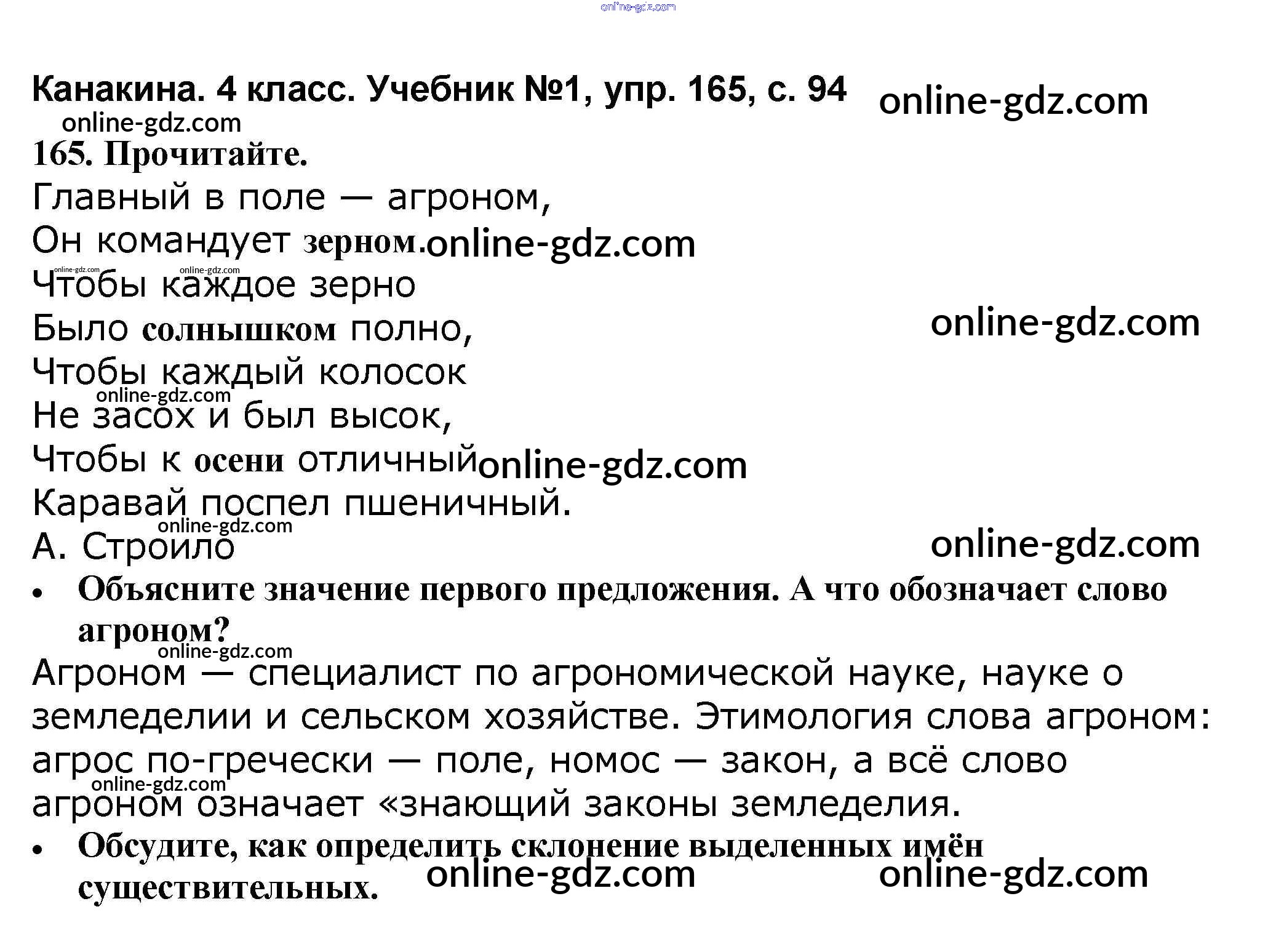 Готовые домашние задания по Русскому языку за 4 класс Учебник Канакина, Горецкий Школа России 2015 - Часть 1 165