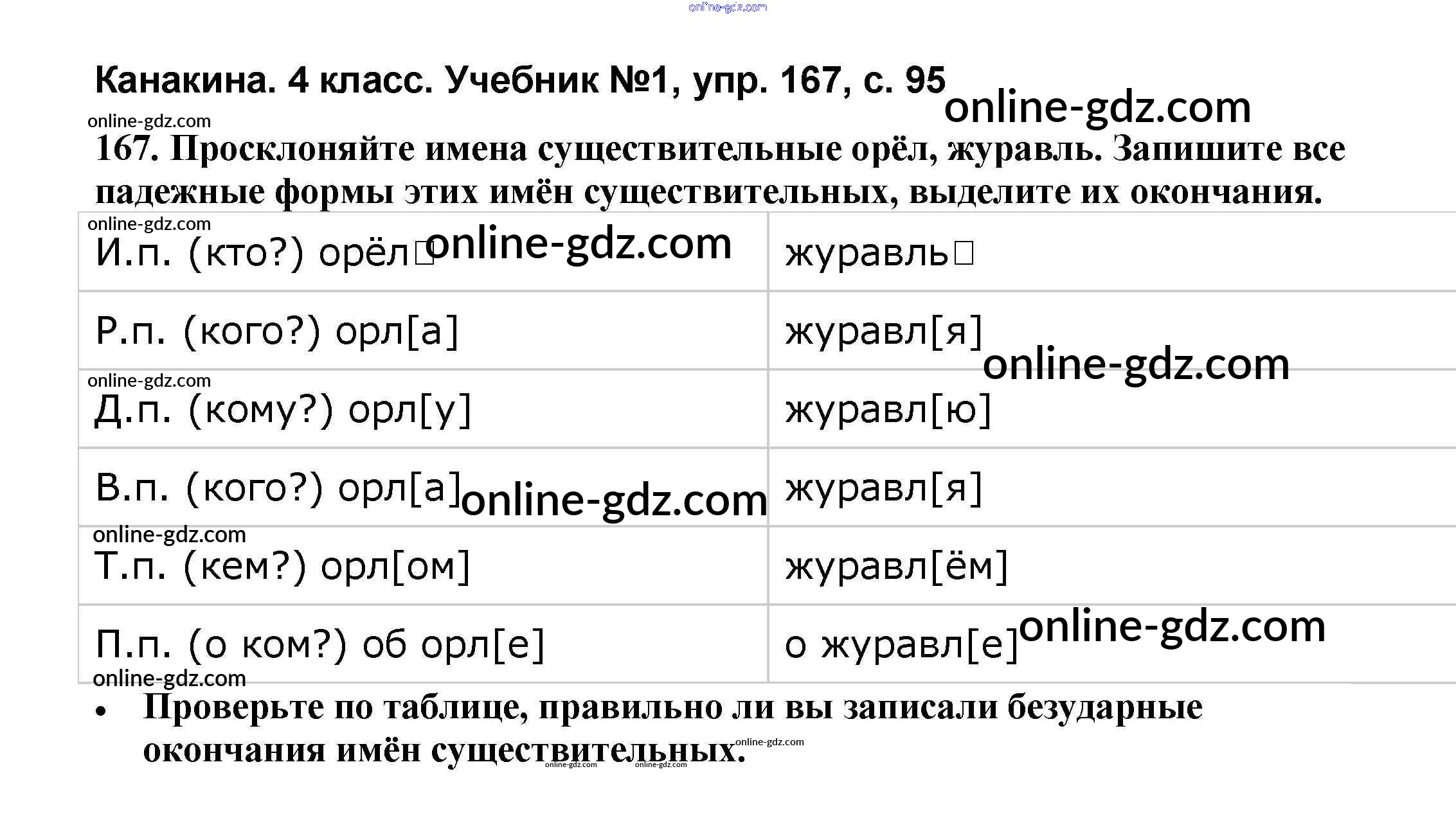 Готовые домашние задания по Русскому языку за 4 класс Учебник Канакина, Горецкий Школа России 2015 - Часть 1 167