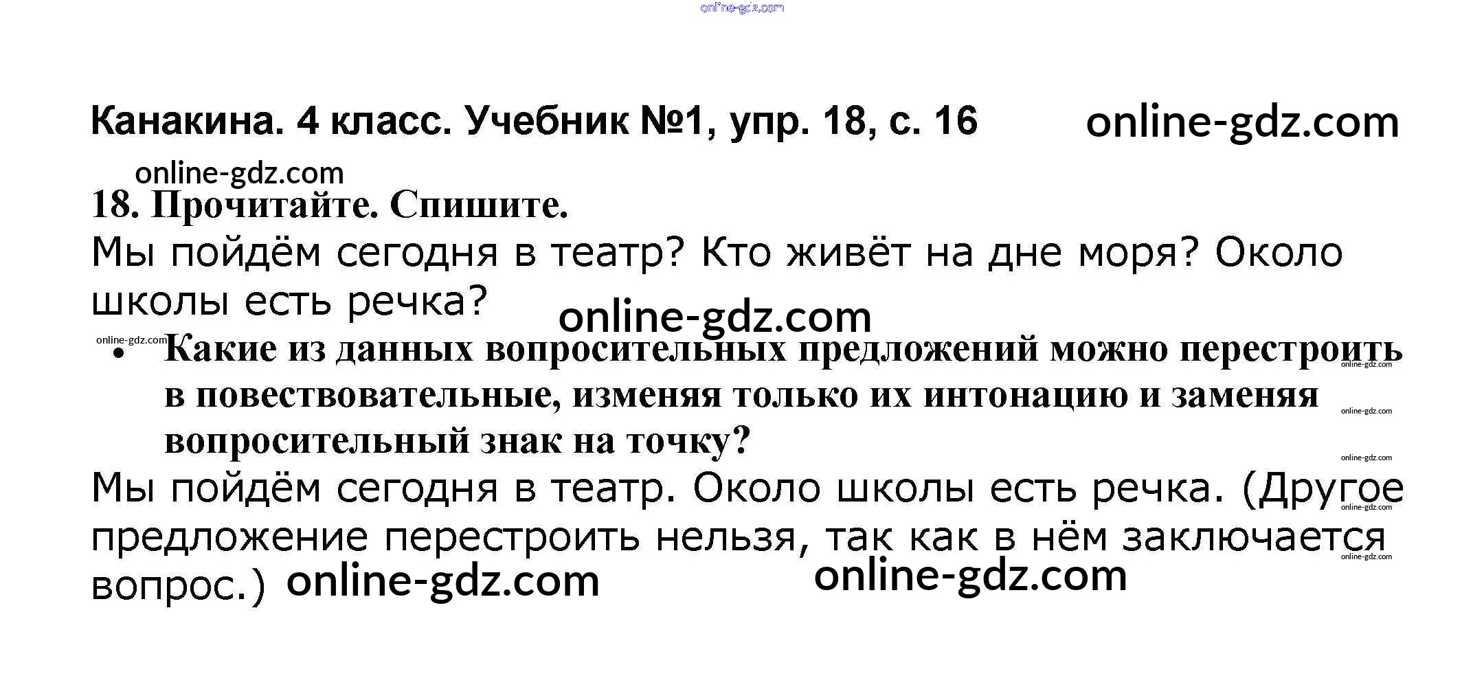 Готовые домашние задания по Русскому языку за 4 класс Учебник Канакина, Горецкий Школа России 2015 - Часть 1 18
