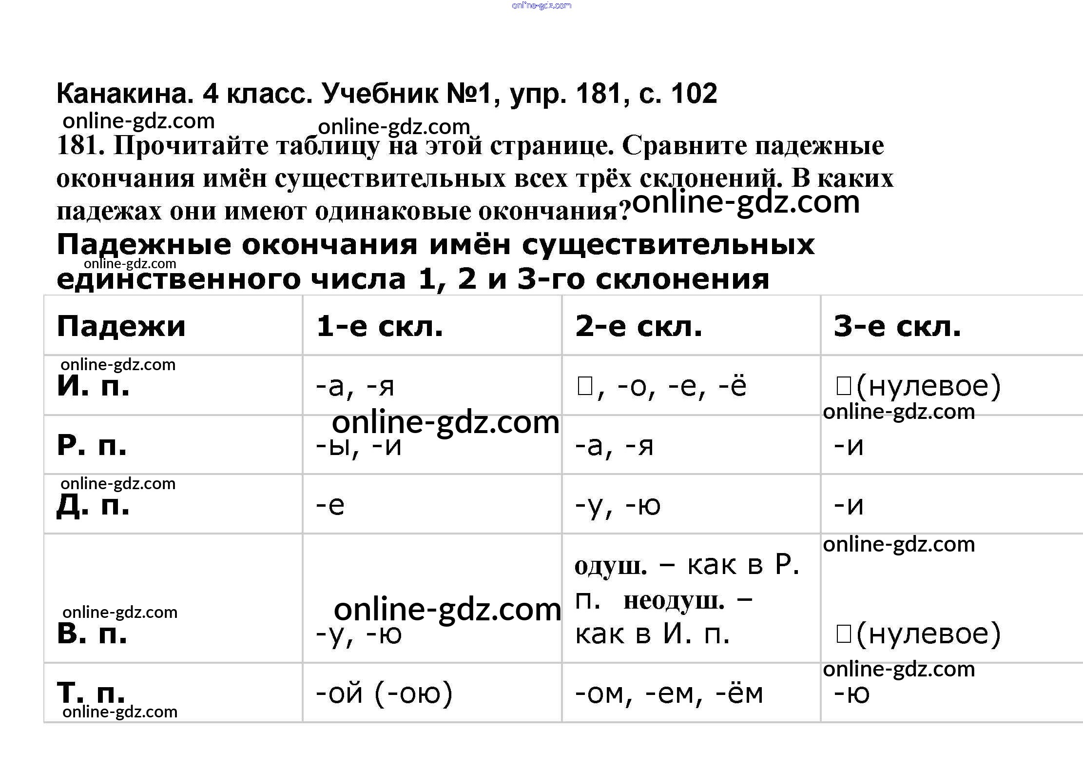 Готовые домашние задания по Русскому языку за 4 класс Учебник Канакина, Горецкий Школа России 2015 - Часть 1 181