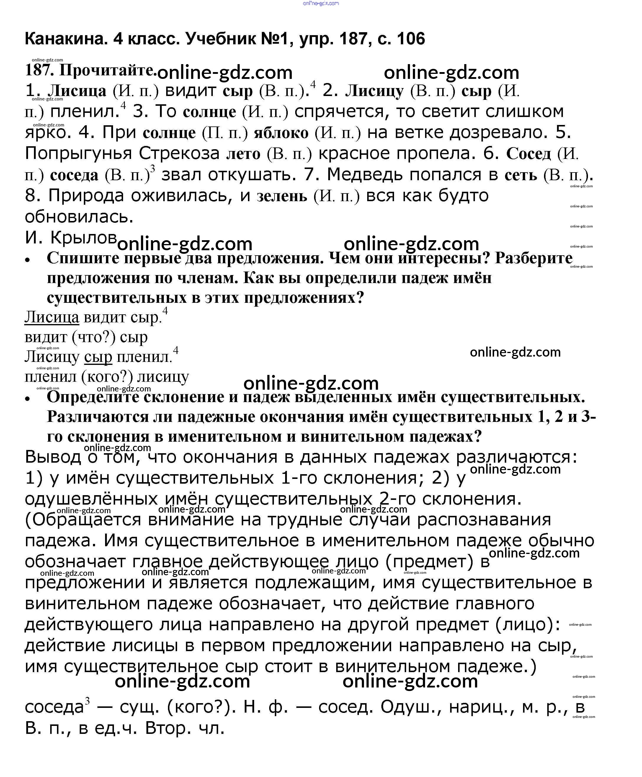 Готовые домашние задания по Русскому языку за 4 класс Учебник Канакина, Горецкий Школа России 2015 - Часть 1 187