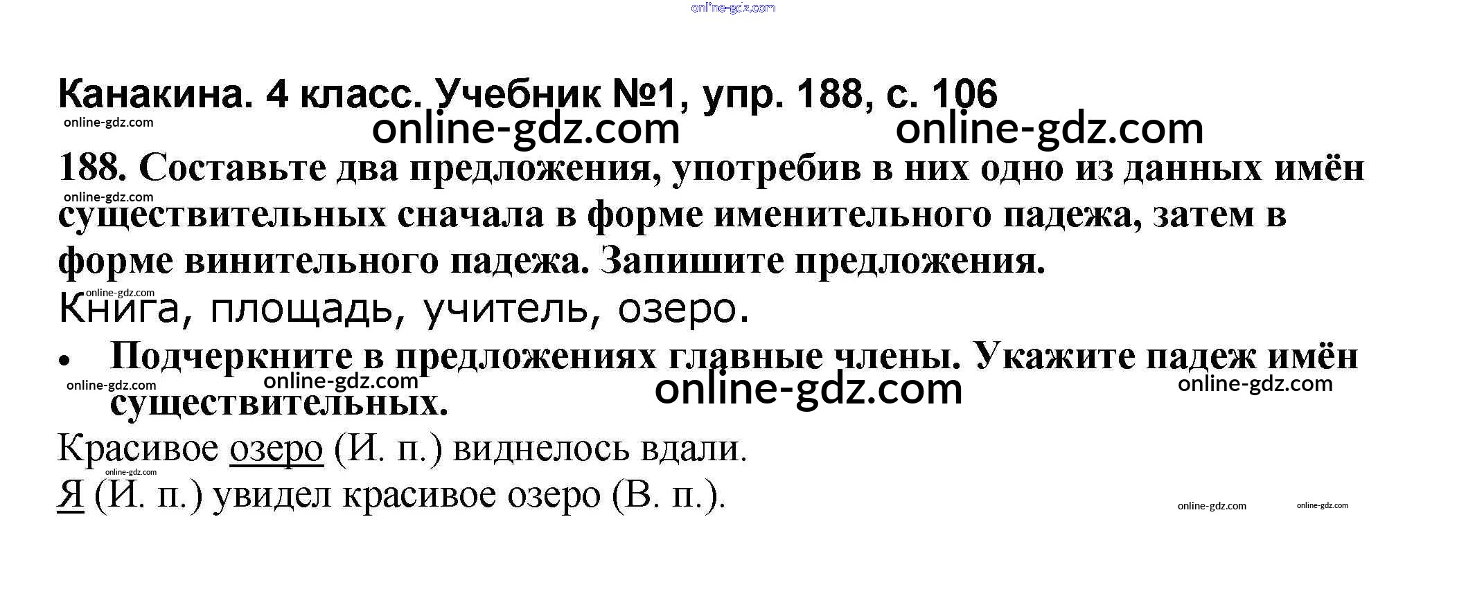 Готовые домашние задания по Русскому языку за 4 класс Учебник Канакина, Горецкий Школа России 2015 - Часть 1 188