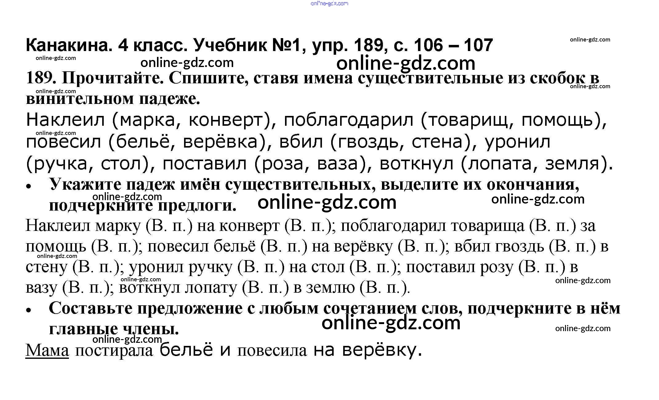 Готовые домашние задания по Русскому языку за 4 класс Учебник Канакина, Горецкий Школа России 2015 - Часть 1 189