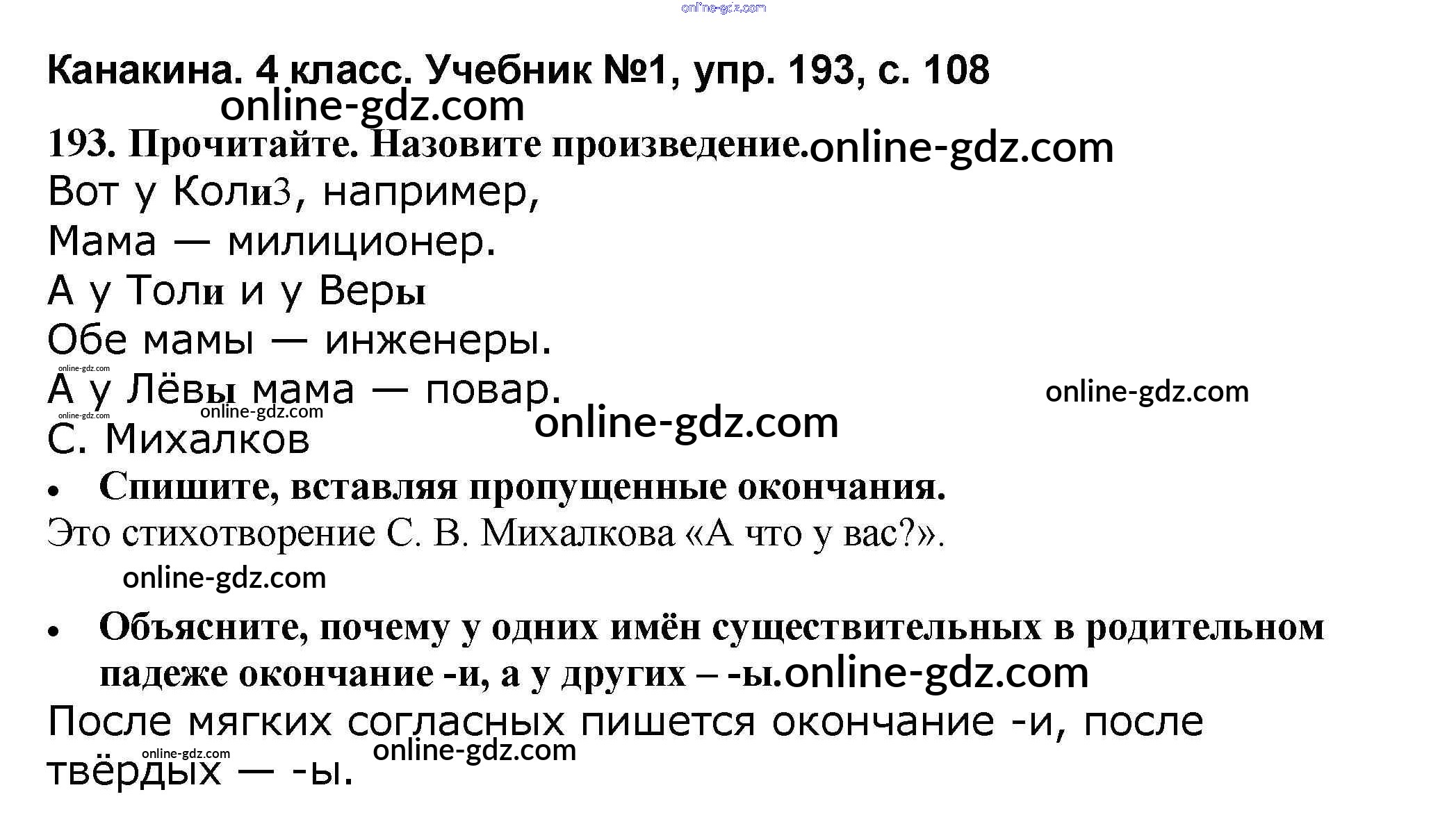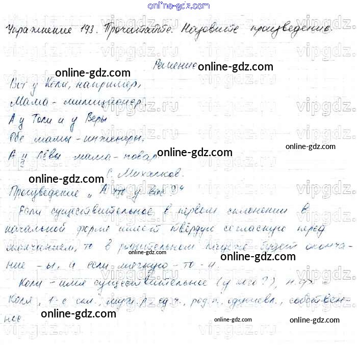 Готовые домашние задания по Русскому языку за 4 класс Учебник Канакина, Горецкий Школа России 2015 - Часть 1 193