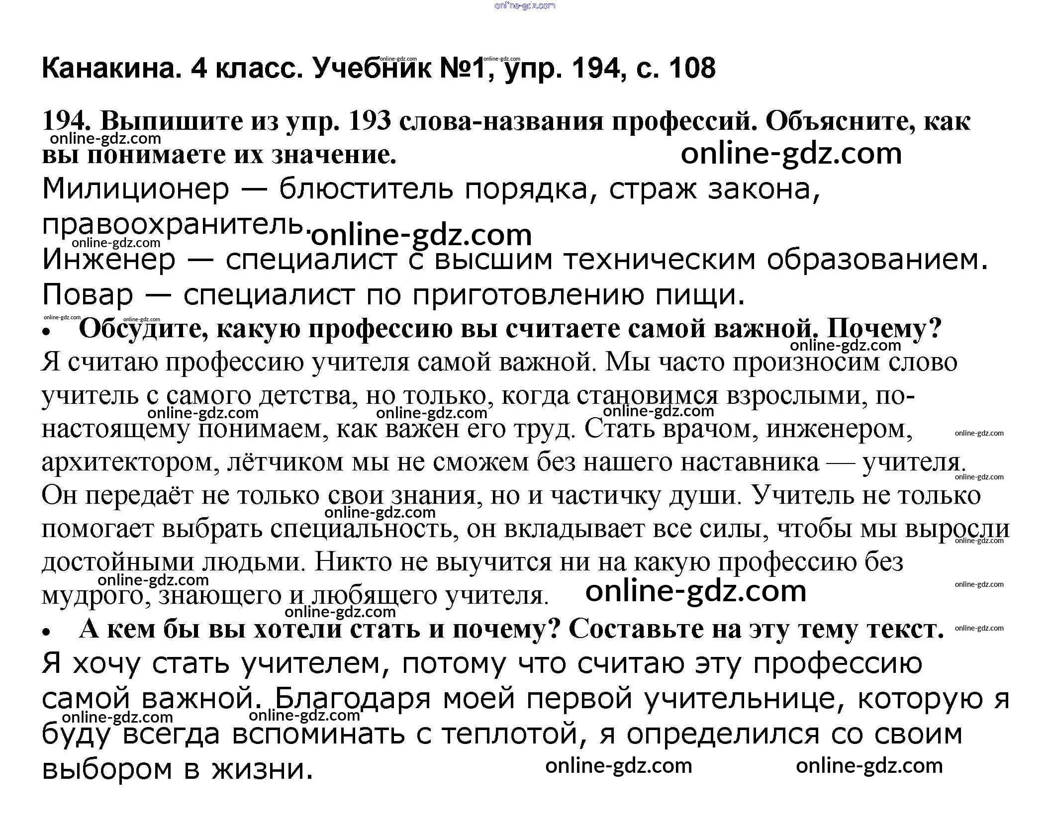 Готовые домашние задания по Русскому языку за 4 класс Учебник Канакина, Горецкий Школа России 2015 - Часть 1 194