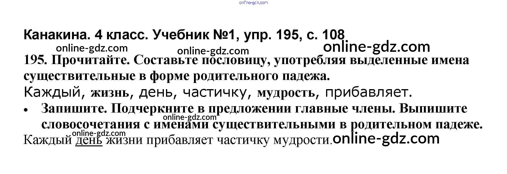 Готовые домашние задания по Русскому языку за 4 класс Учебник Канакина, Горецкий Школа России 2015 - Часть 1 195