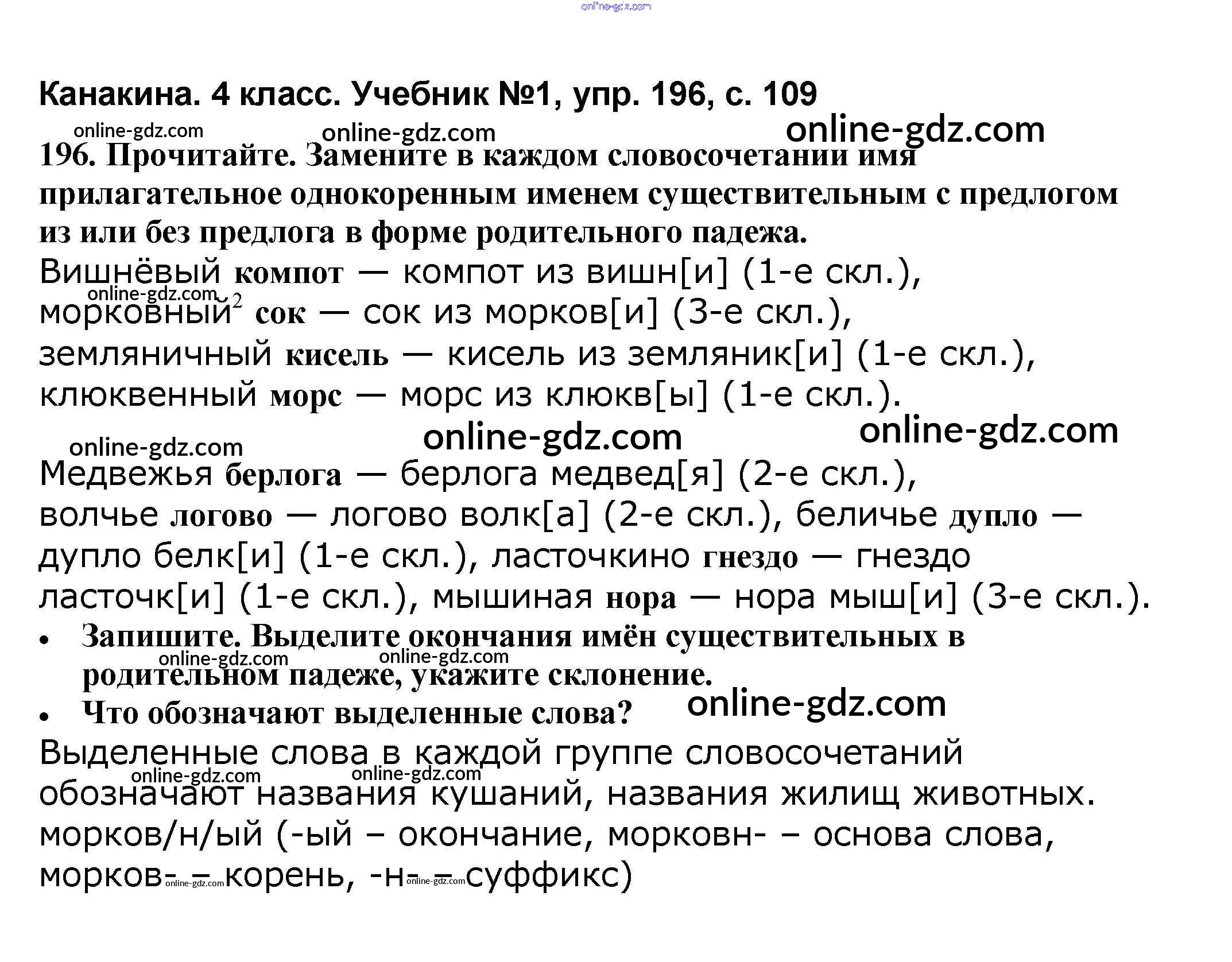 Готовые домашние задания по Русскому языку за 4 класс Учебник Канакина, Горецкий Школа России 2015 - Часть 1 196