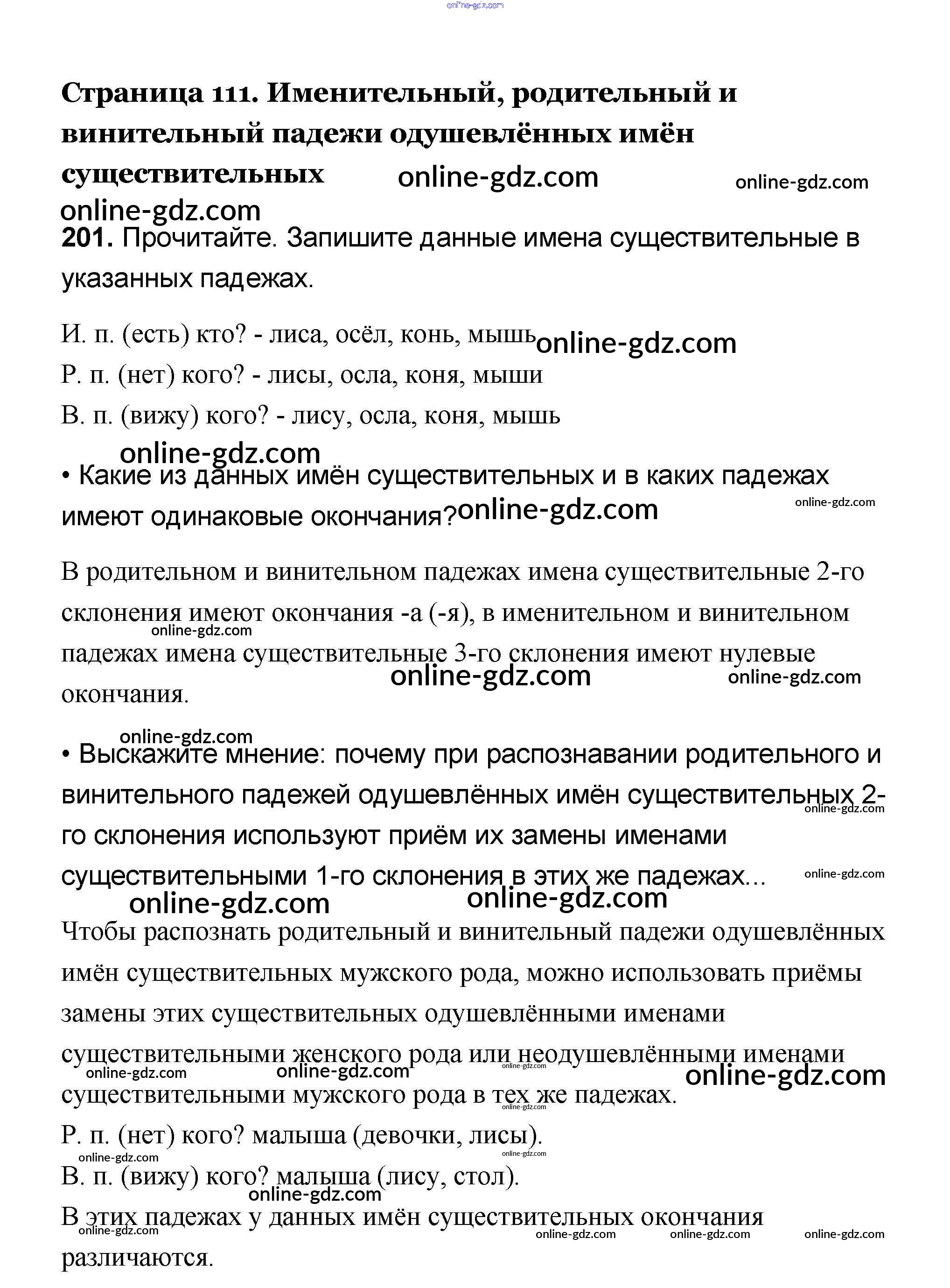 Готовые домашние задания по Русскому языку за 4 класс Учебник Канакина, Горецкий Школа России 2015 - Часть 1 201