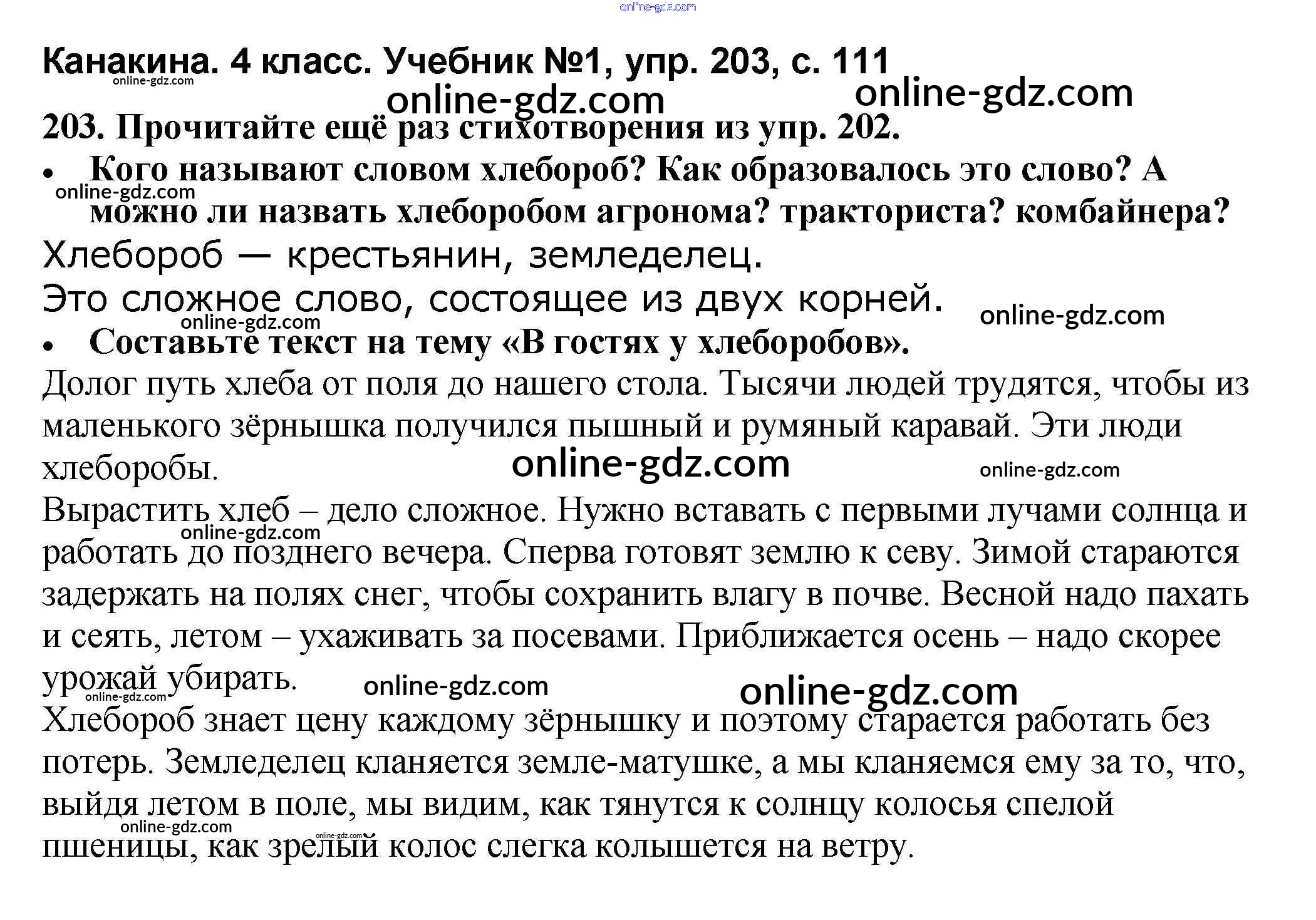 Готовые домашние задания по Русскому языку за 4 класс Учебник Канакина, Горецкий Школа России 2015 - Часть 1 203
