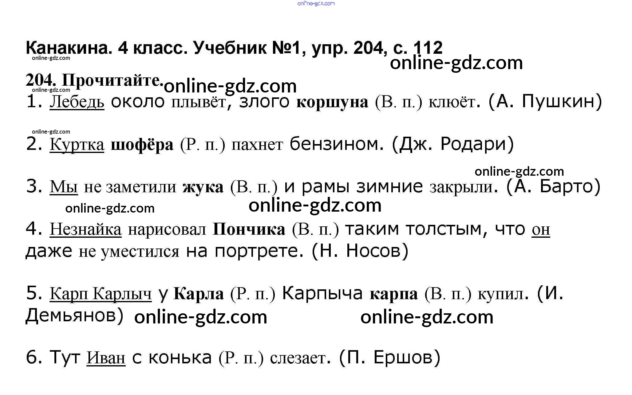 Готовые домашние задания по Русскому языку за 4 класс Учебник Канакина, Горецкий Школа России 2015 - Часть 1 204