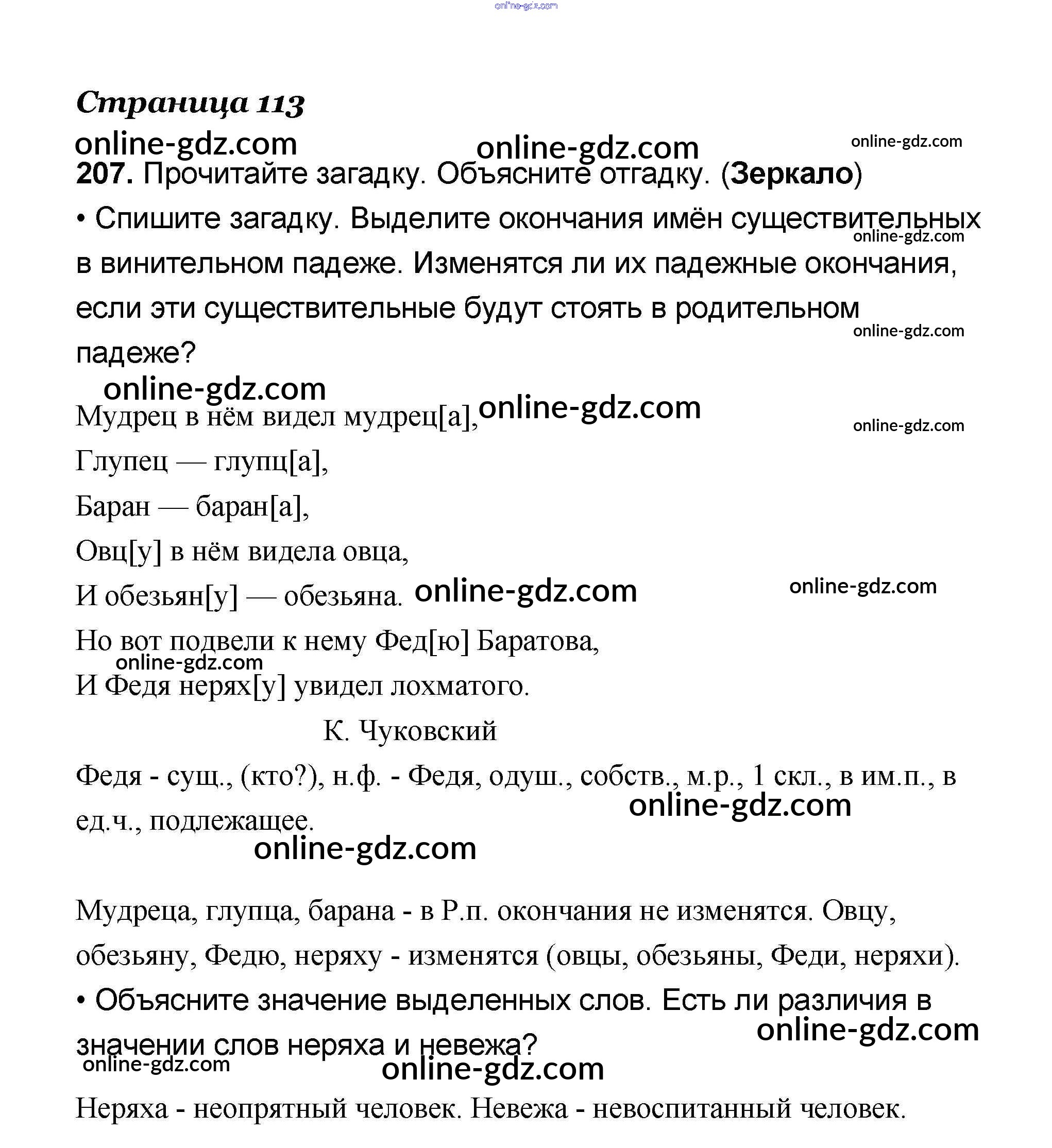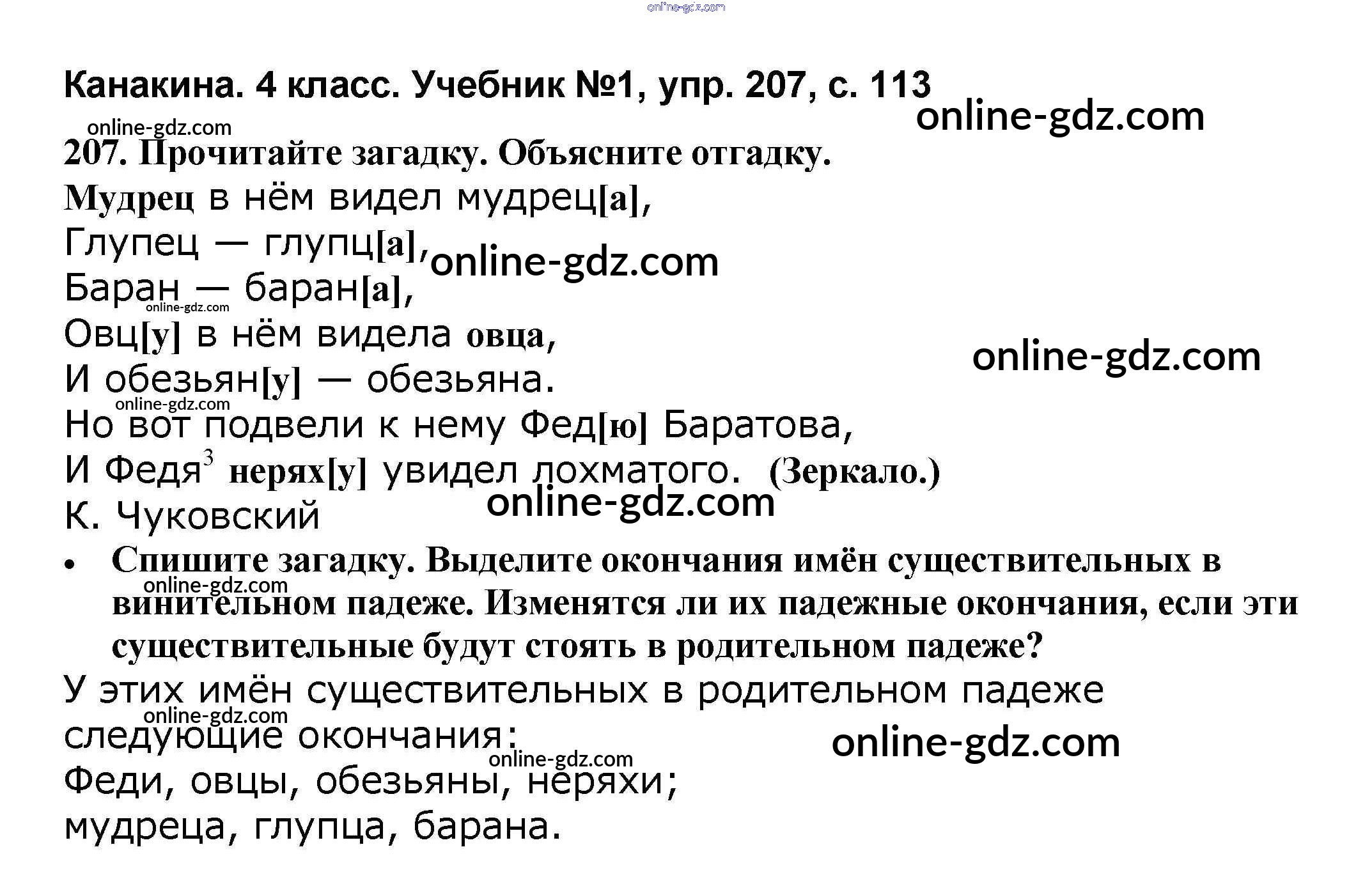 Готовые домашние задания по Русскому языку за 4 класс Учебник Канакина, Горецкий Школа России 2015 - Часть 1 207
