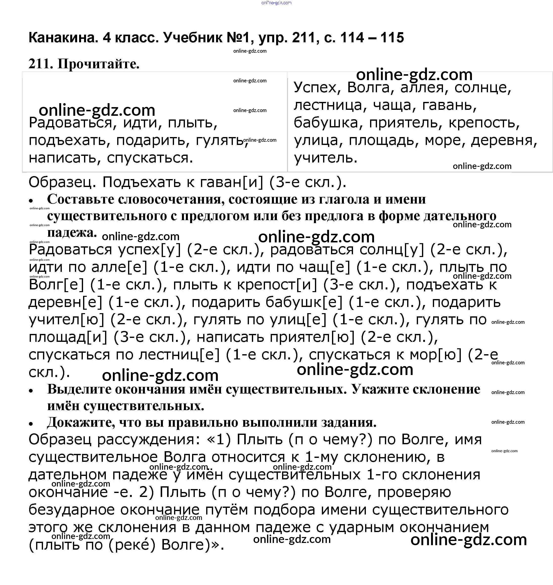 Готовые домашние задания по Русскому языку за 4 класс Учебник Канакина, Горецкий Школа России 2015 - Часть 1 211
