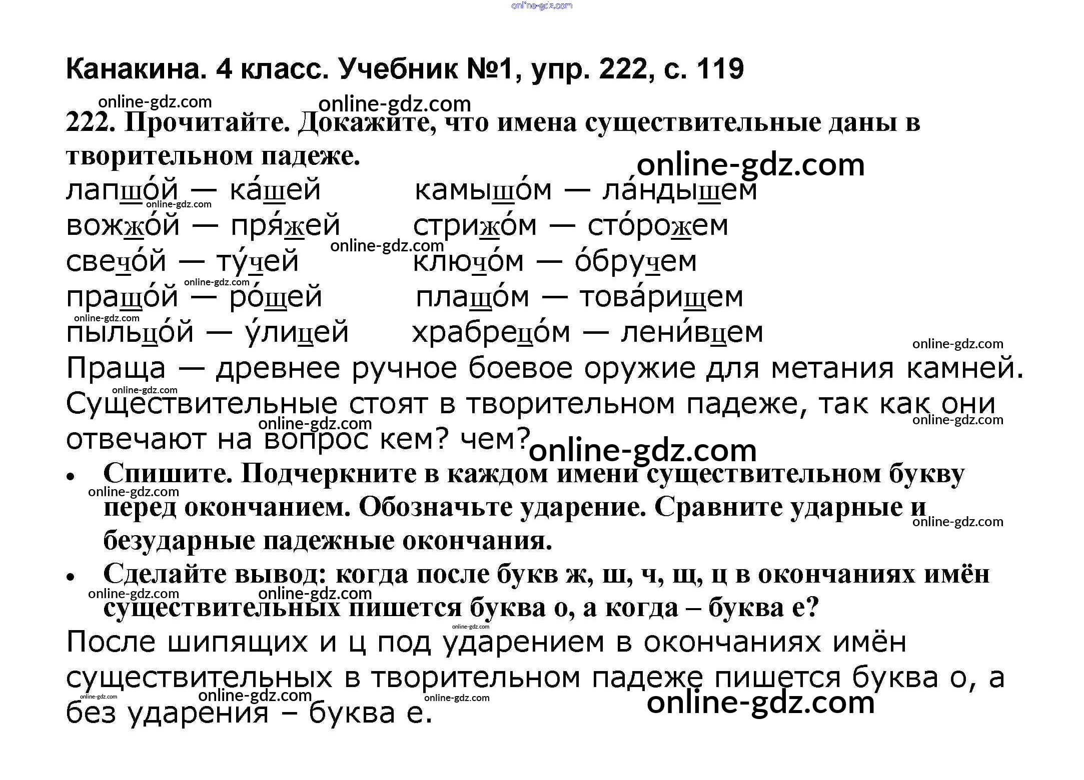 Готовые домашние задания по Русскому языку за 4 класс Учебник Канакина, Горецкий Школа России 2015 - Часть 1 222
