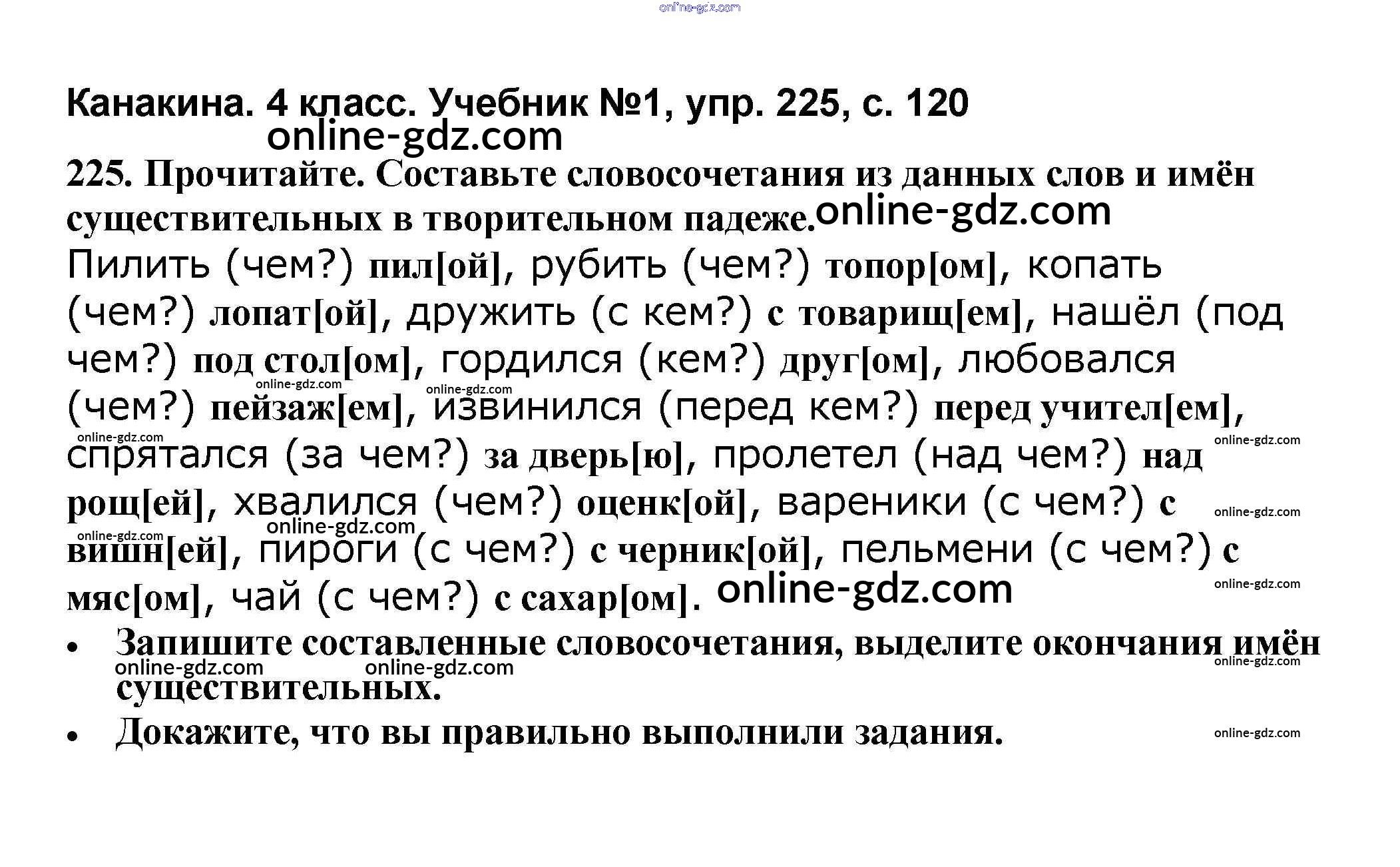 Готовые домашние задания по Русскому языку за 4 класс Учебник Канакина, Горецкий Школа России 2015 - Часть 1 225