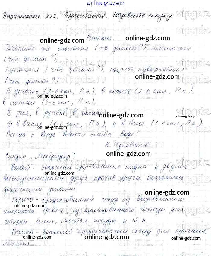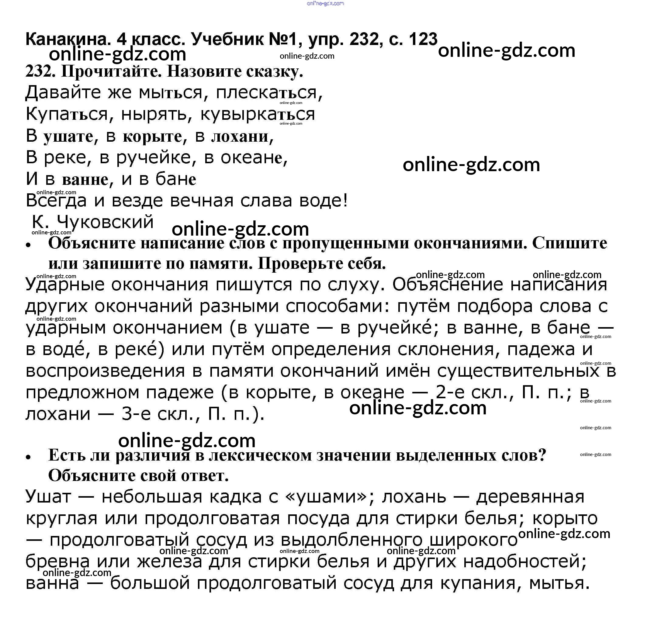 Готовые домашние задания по Русскому языку за 4 класс Учебник Канакина, Горецкий Школа России 2015 - Часть 1 232