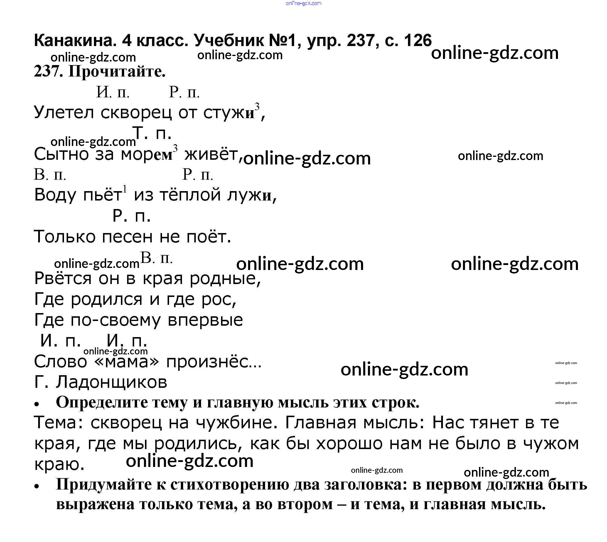 Готовые домашние задания по Русскому языку за 4 класс Учебник Канакина, Горецкий Школа России 2015 - Часть 1 237