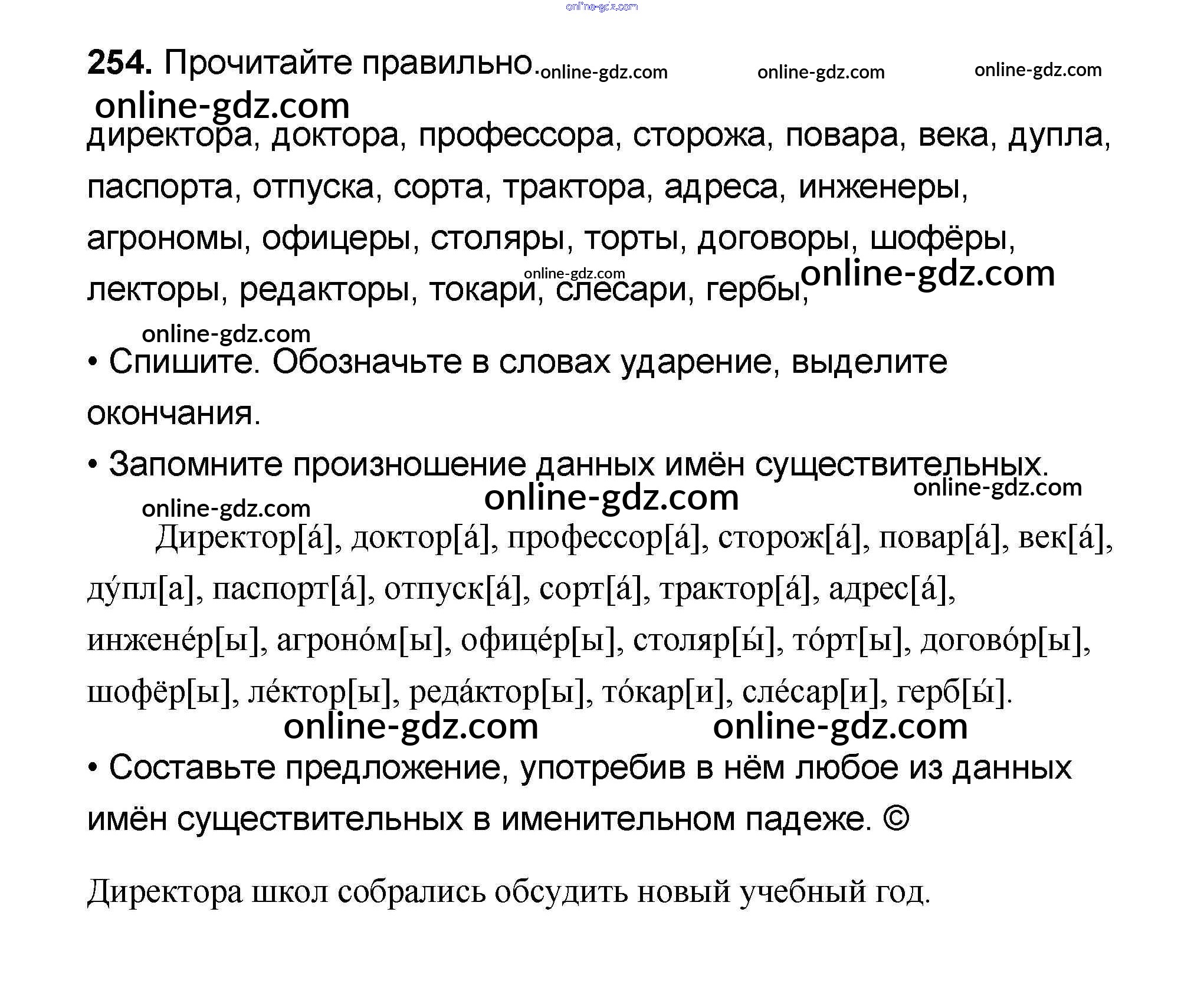 Готовые домашние задания по Русскому языку за 4 класс Учебник Канакина, Горецкий Школа России 2015 - Часть 1 254
