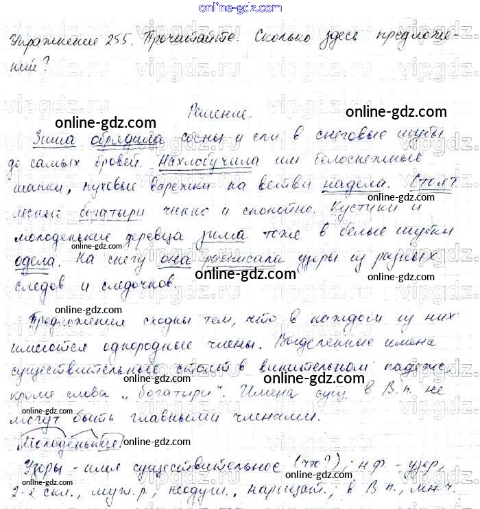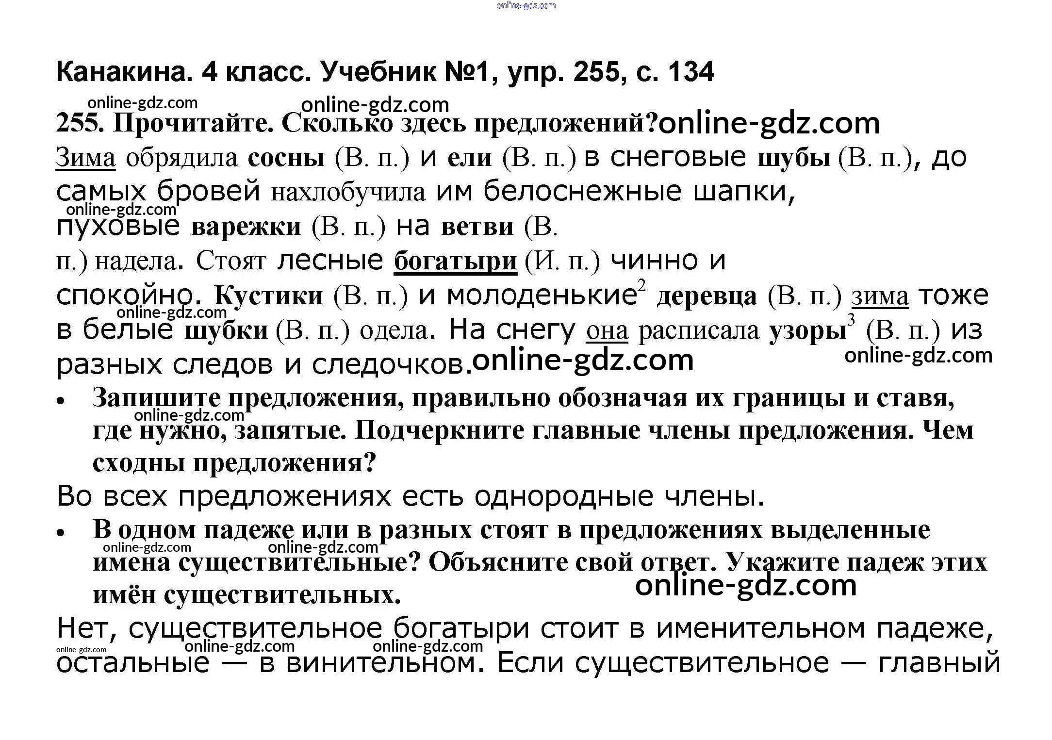 Готовые домашние задания по Русскому языку за 4 класс Учебник Канакина, Горецкий Школа России 2015 - Часть 1 255
