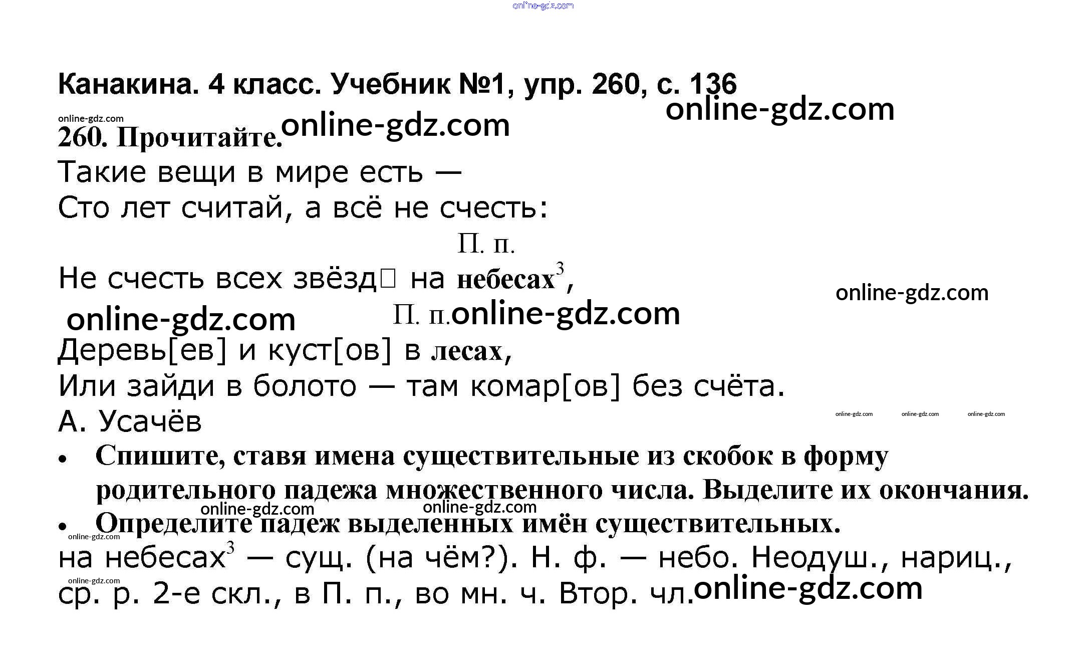 Готовые домашние задания по Русскому языку за 4 класс Учебник Канакина, Горецкий Школа России 2015 - Часть 1 260