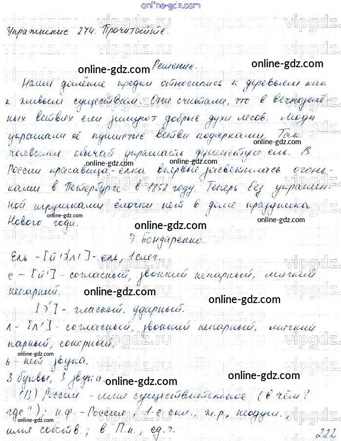 Готовые домашние задания по Русскому языку за 4 класс Учебник Канакина, Горецкий Школа России 2015 - Часть 1 274