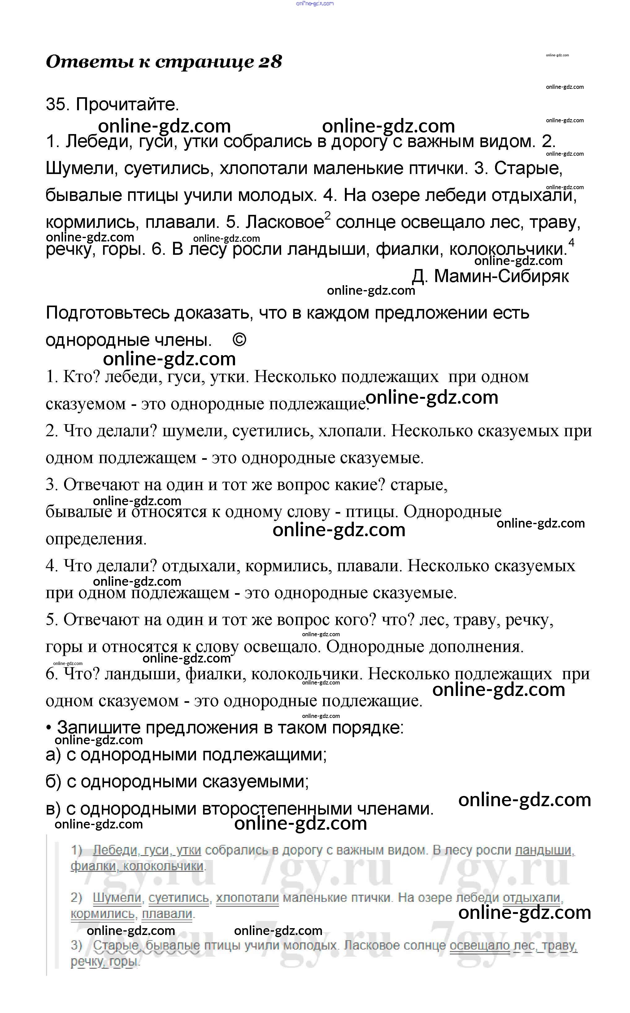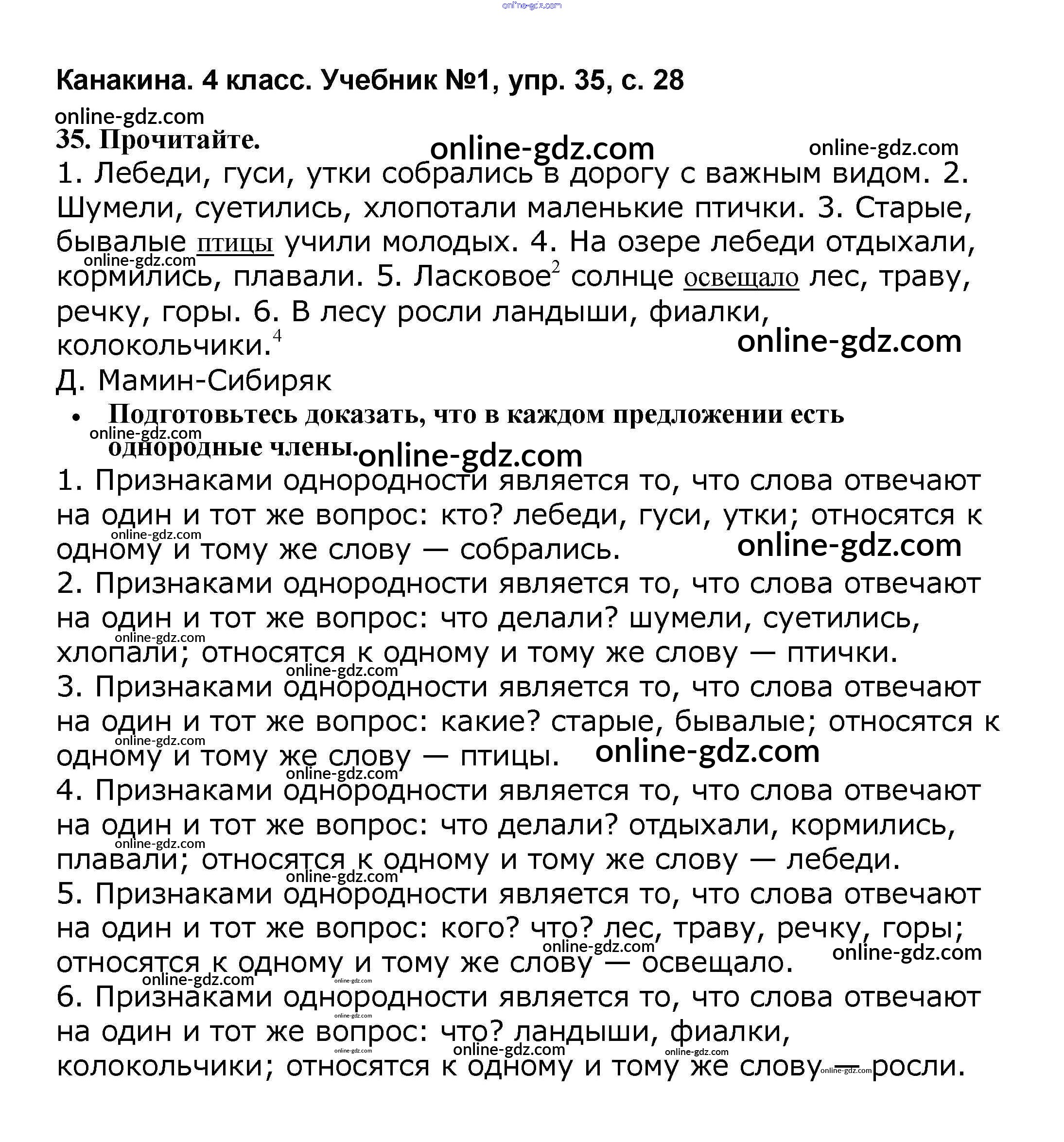 Готовые домашние задания по Русскому языку за 4 класс Учебник Канакина, Горецкий Школа России 2015 - Часть 1 35