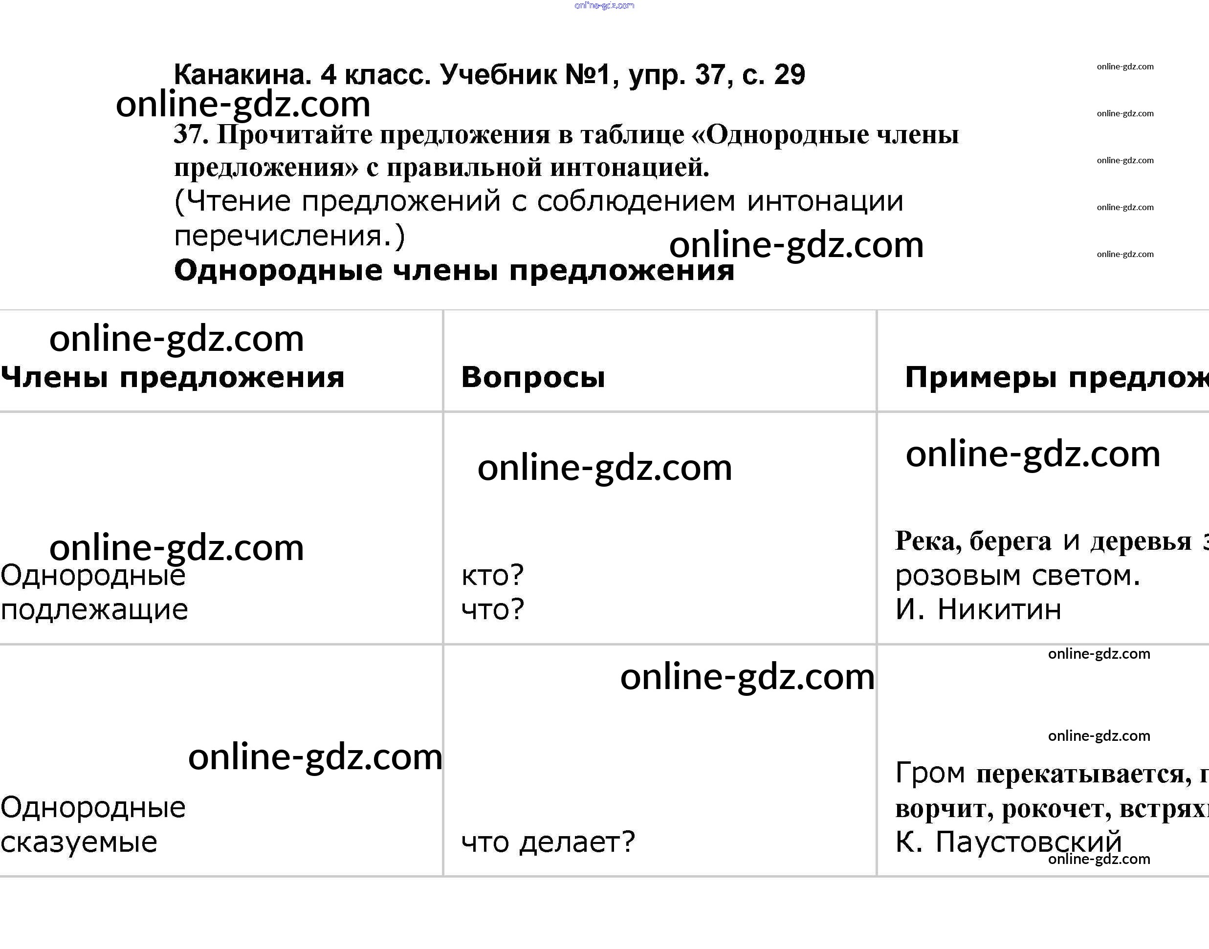Готовые домашние задания по Русскому языку за 4 класс Учебник Канакина, Горецкий Школа России 2015 - Часть 1 37