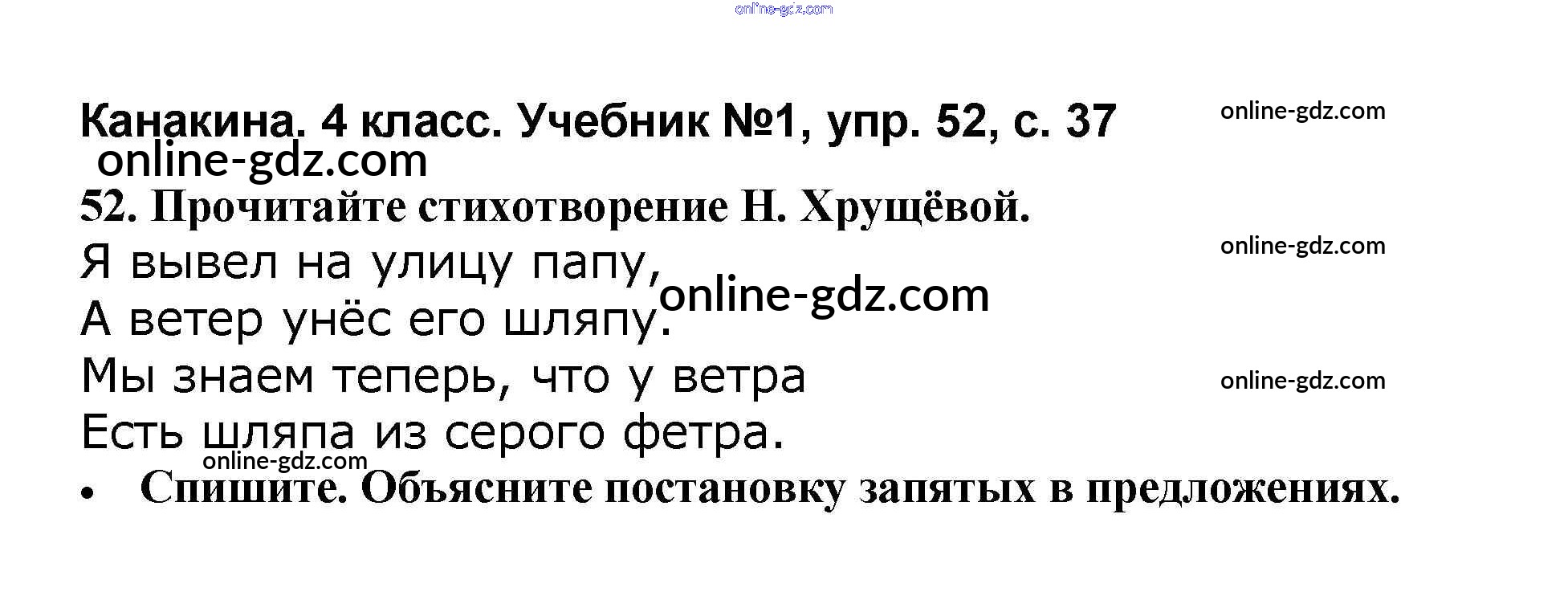 Готовые домашние задания по Русскому языку за 4 класс Учебник Канакина, Горецкий Школа России 2015 - Часть 1 52