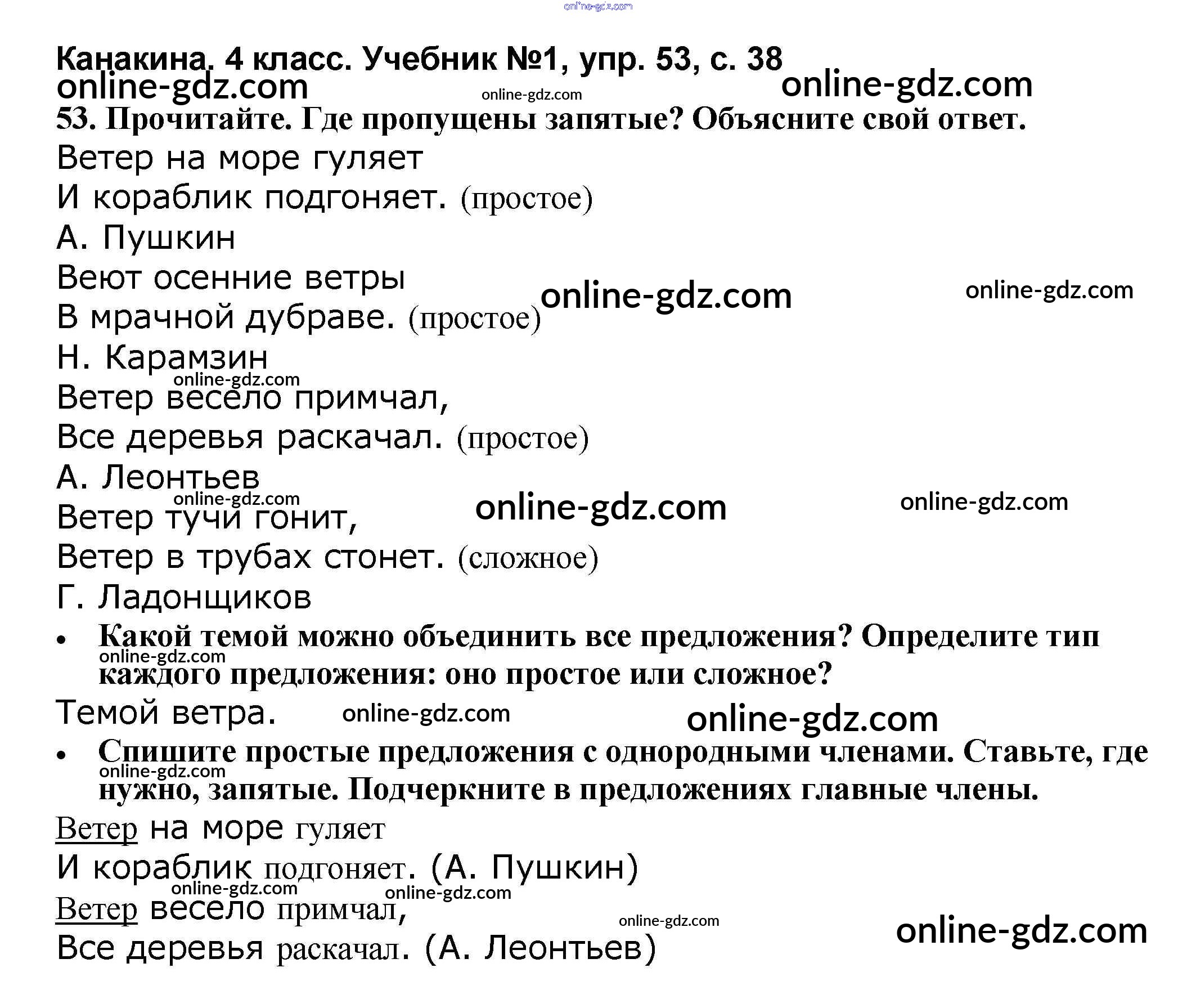 Готовые домашние задания по Русскому языку за 4 класс Учебник Канакина, Горецкий Школа России 2015 - Часть 1 53