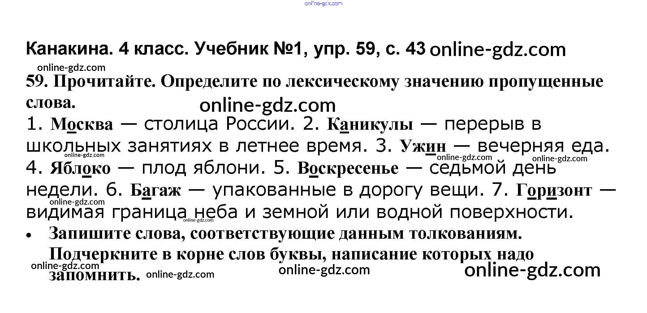Готовые домашние задания по Русскому языку за 4 класс Учебник Канакина, Горецкий Школа России 2015 - Часть 1 59