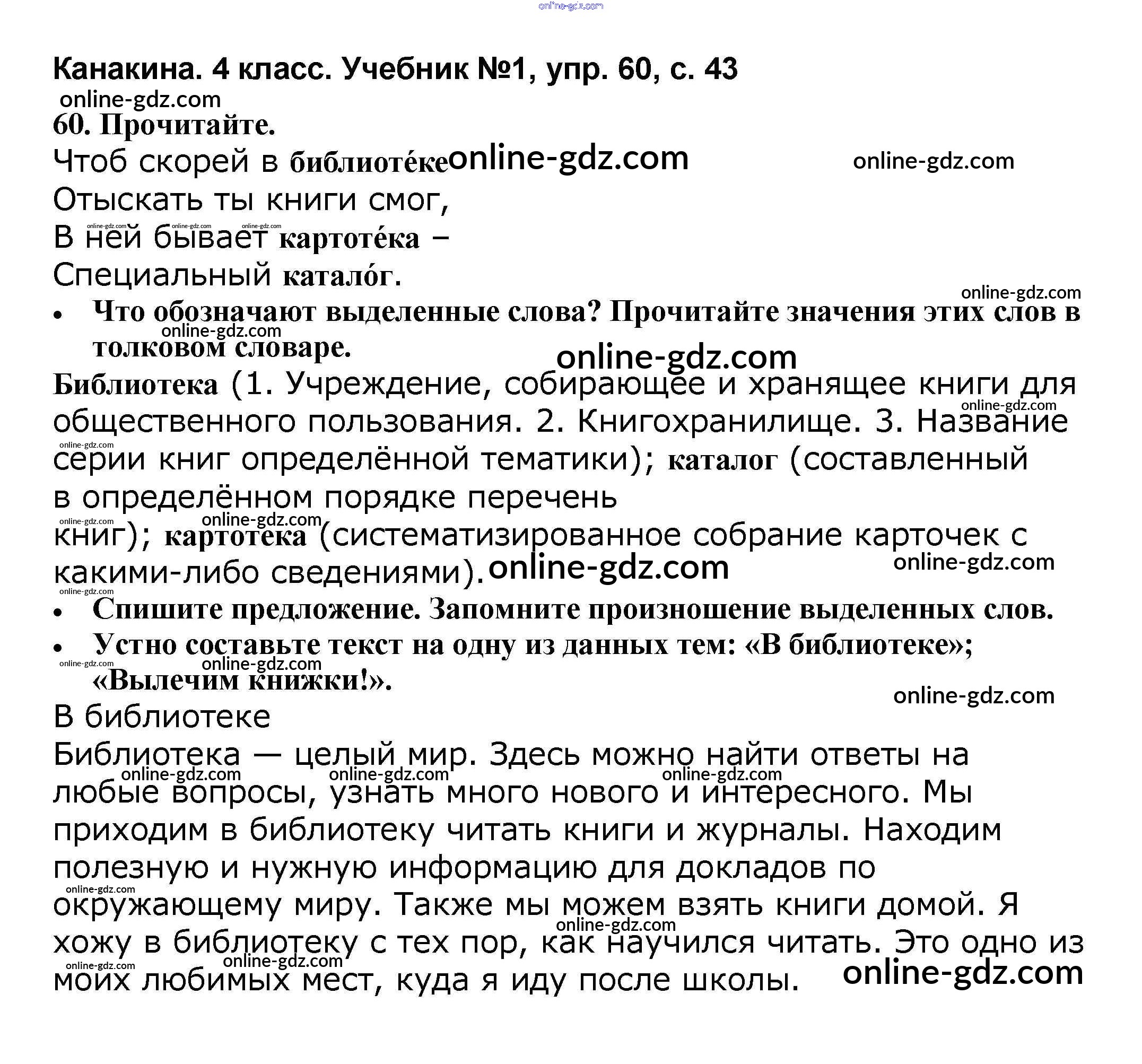 Готовые домашние задания по Русскому языку за 4 класс Учебник Канакина, Горецкий Школа России 2015 - Часть 1 60