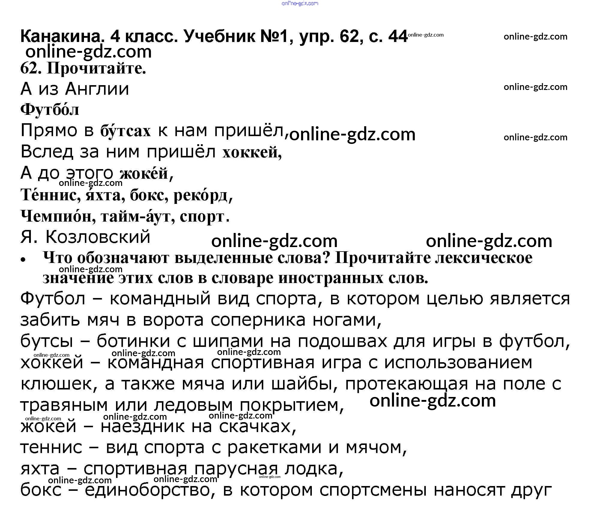 Готовые домашние задания по Русскому языку за 4 класс Учебник Канакина, Горецкий Школа России 2015 - Часть 1 62