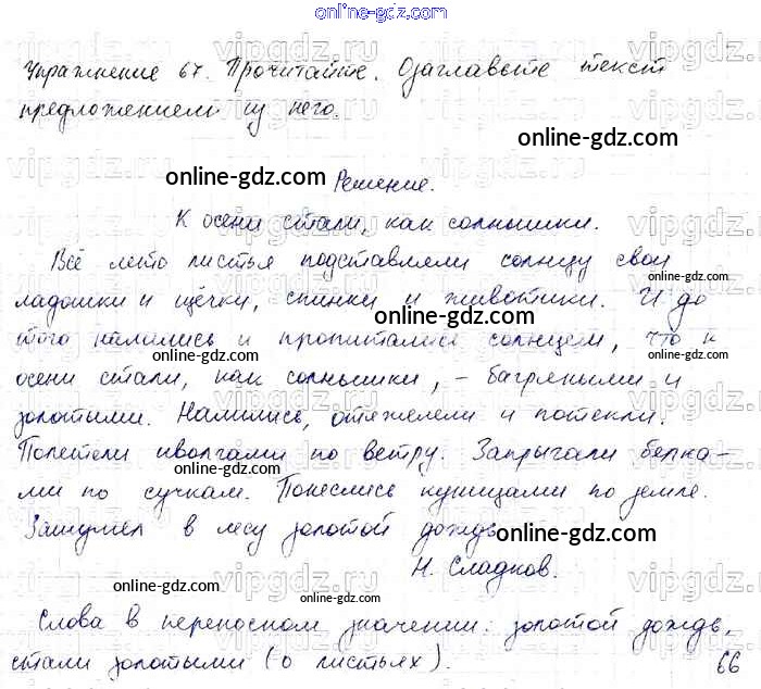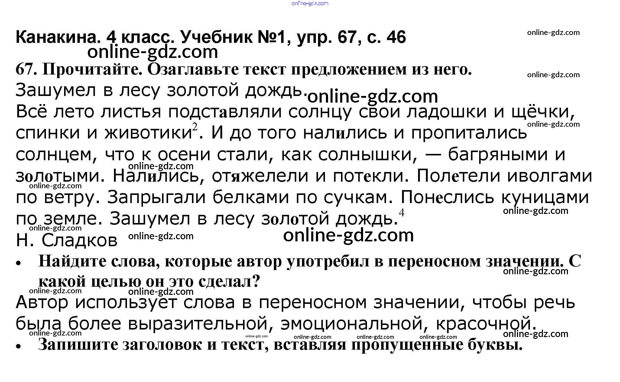 Готовые домашние задания по Русскому языку за 4 класс Учебник Канакина, Горецкий Школа России 2015 - Часть 1 67