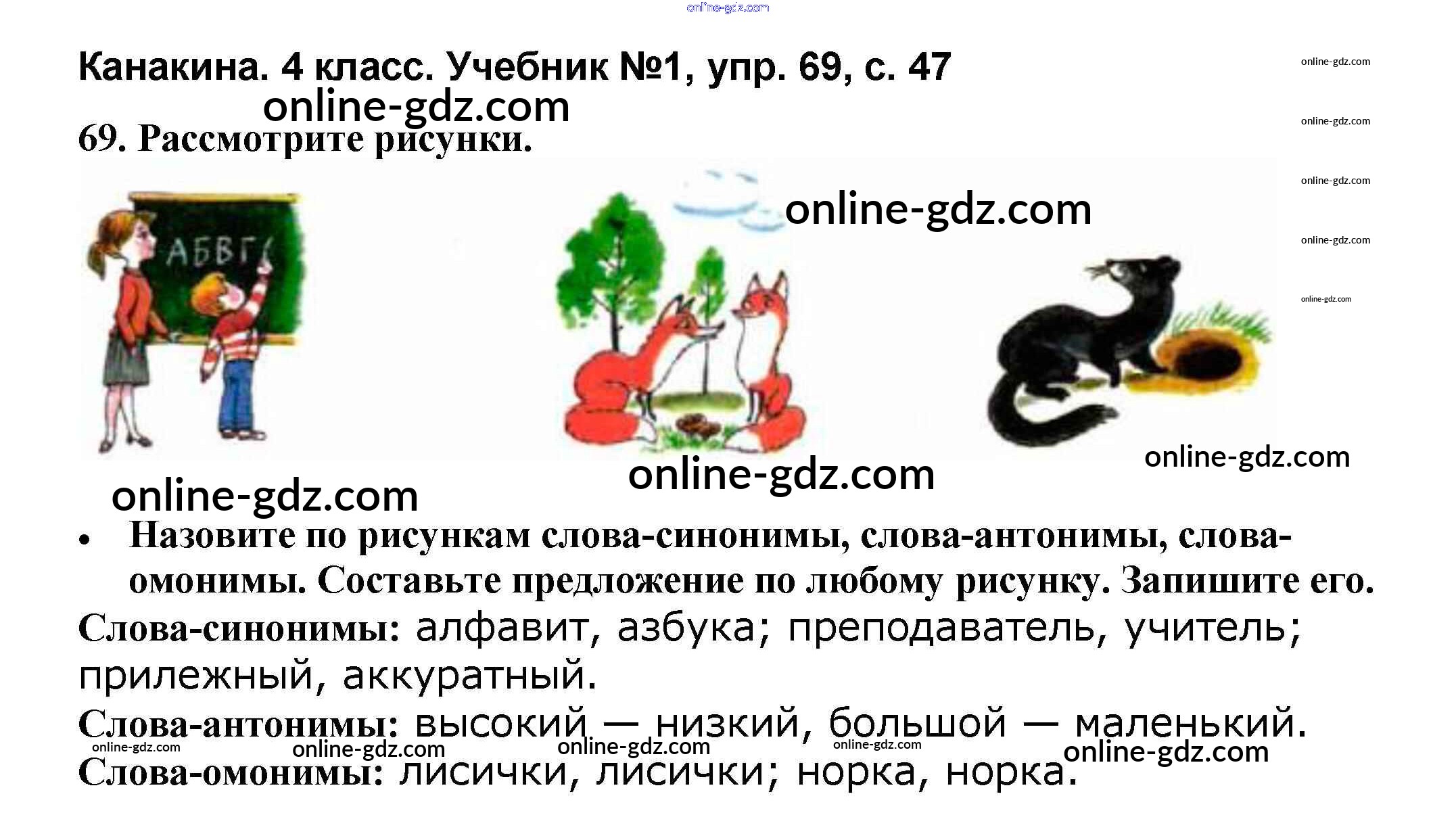 Готовые домашние задания по Русскому языку за 4 класс Учебник Канакина, Горецкий Школа России 2015 - Часть 1 69