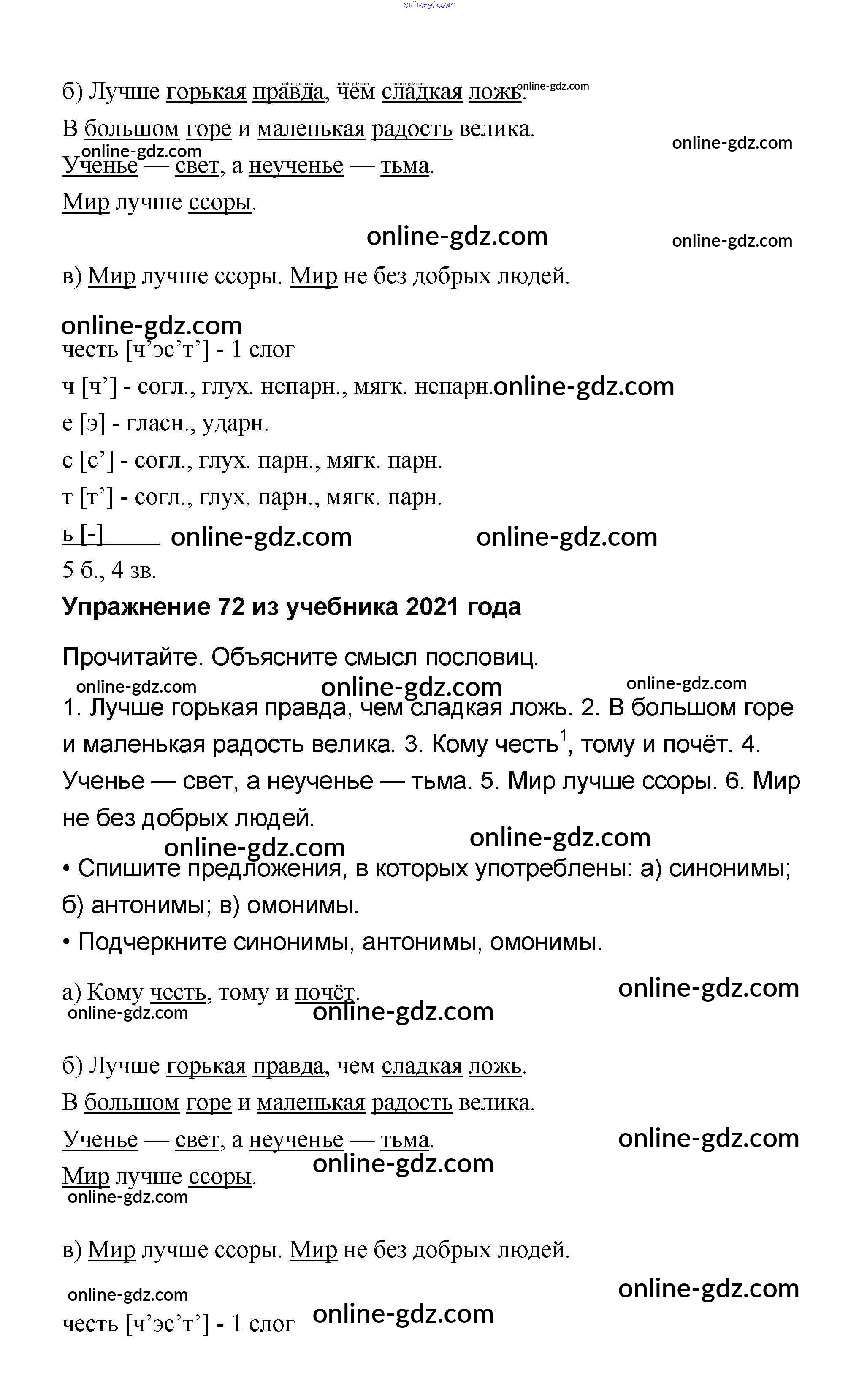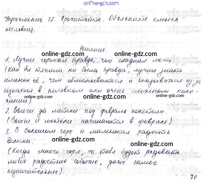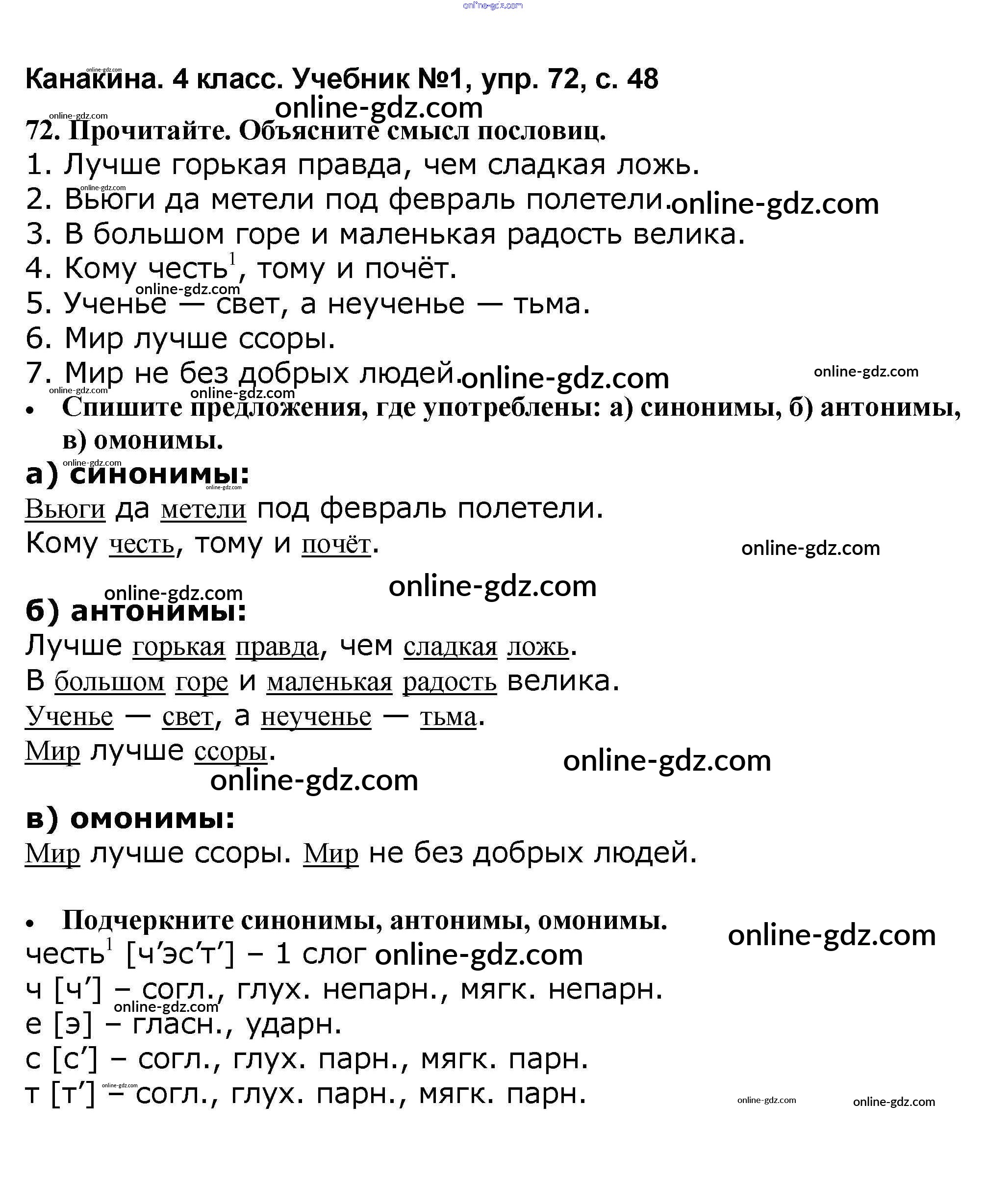 Готовые домашние задания по Русскому языку за 4 класс Учебник Канакина, Горецкий Школа России 2015 - Часть 1 72