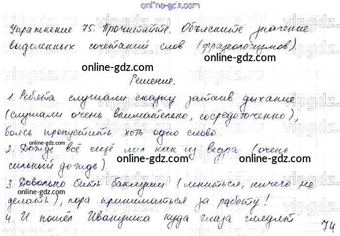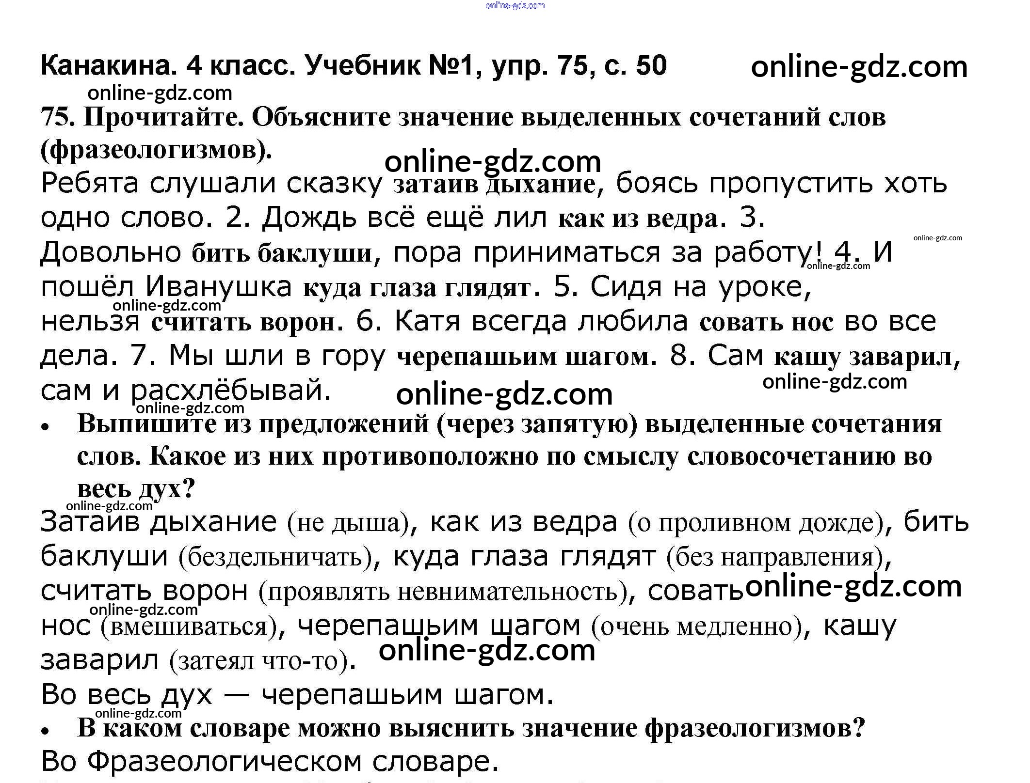 Готовые домашние задания по Русскому языку за 4 класс Учебник Канакина, Горецкий Школа России 2015 - Часть 1 75