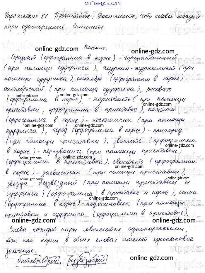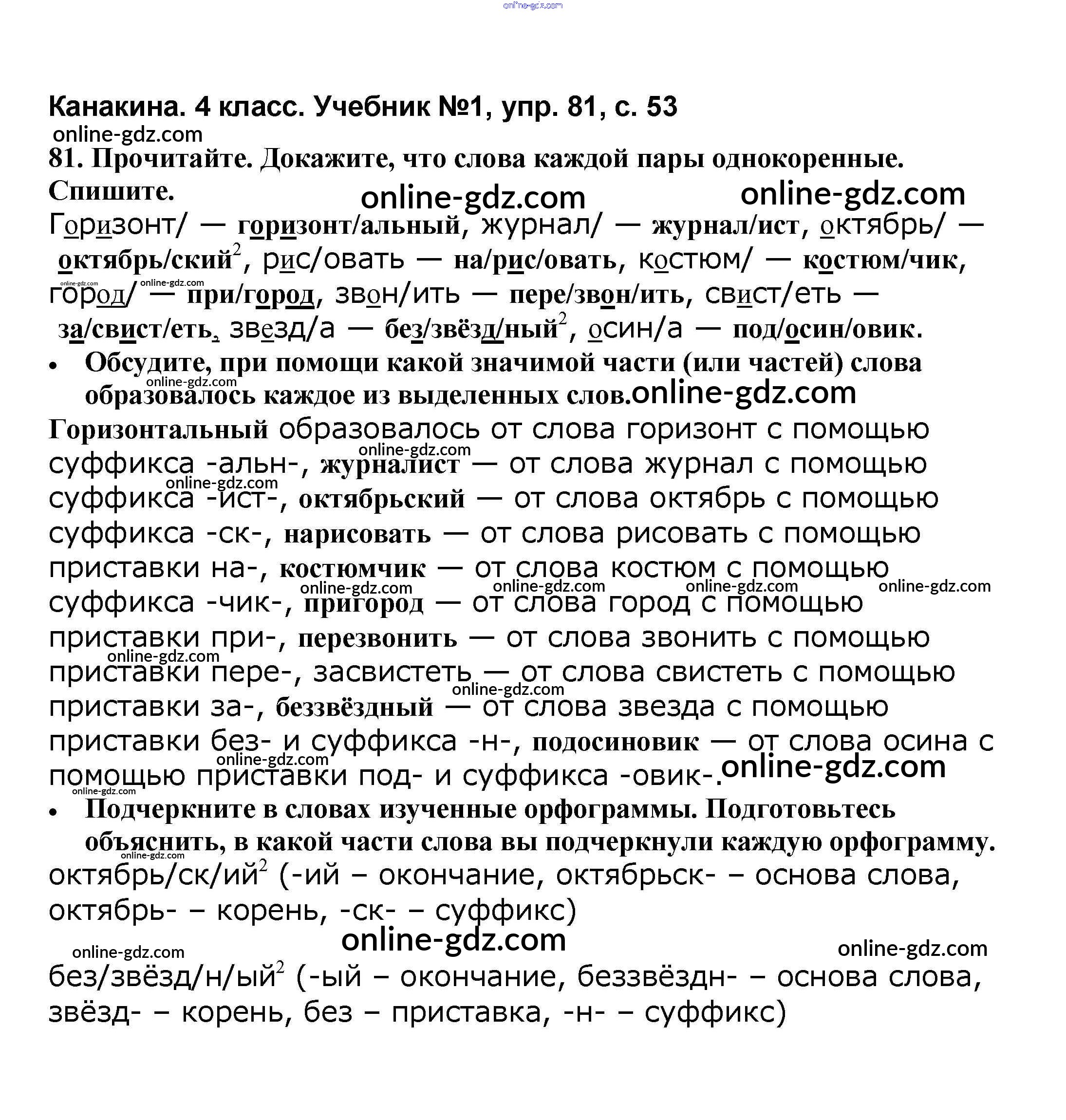 Готовые домашние задания по Русскому языку за 4 класс Учебник Канакина, Горецкий Школа России 2015 - Часть 1 81